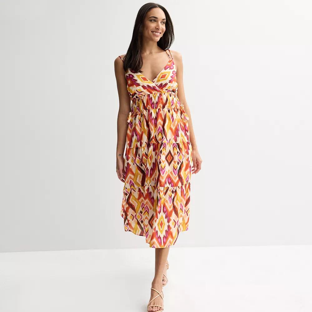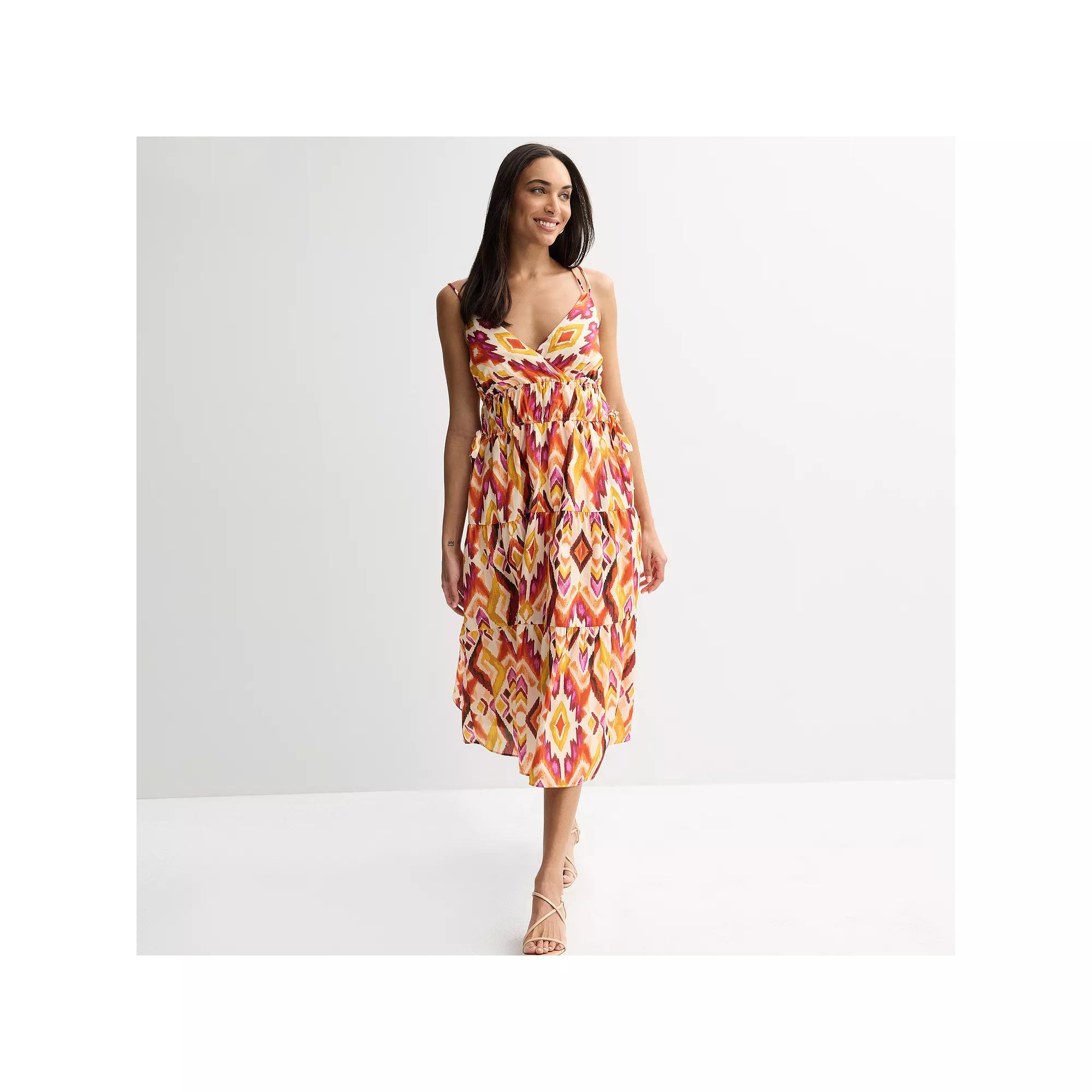 Embrace effortless charm in this breezy women's Donna Ricco sleeveless V-neck elastic waist tiered dress. Click on this WOMEN'S GUIDE to find the perfect fit and more!Embrace effortless charm in this breezy women's Donna Ricco sleeveless V-neck elastic waist tiered dress. Click on this WOMEN'S GUIDE to find the perfect fit and more!FEATURES V-neck Sleeveless Elastic closure Fully lined Empire-waistband silhouetteFIT & SIZING Flowy fit 41-in. from shoulder to hem Midi length hits below the knee Drawstring elastic waistbandFABRIC & CARE Polyester Machine wash and tumble dry low Imported Size: Small. Color: Orange Print. Gender: female. Age Group: adult.