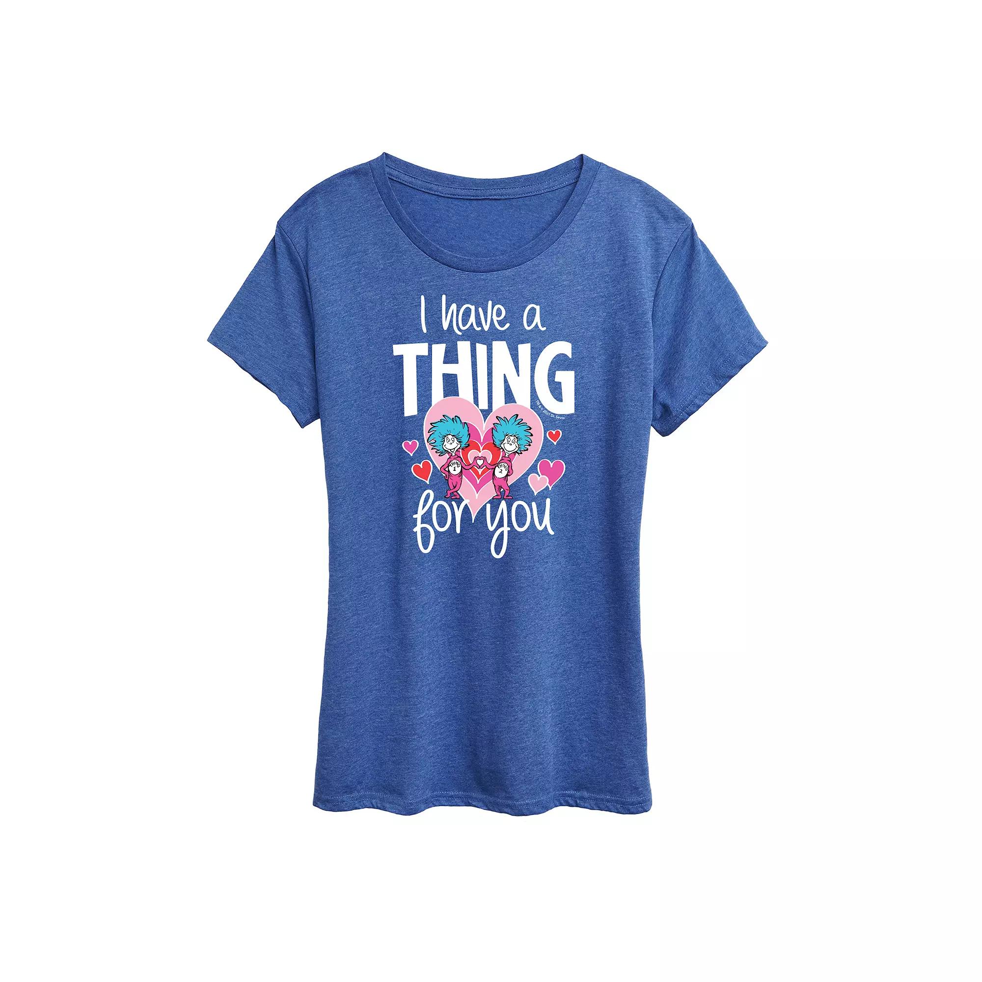 She will love showing off her style with this Womens Dr. Seuss I Have A Thing For You Graphic Tee. FEATURES Short sleeves CrewneckFABRIC & CARE Cotton/Polyester Machine wash Imported Size: Xxl. Color: Med Blue. Gender: female. Age Group: adult.