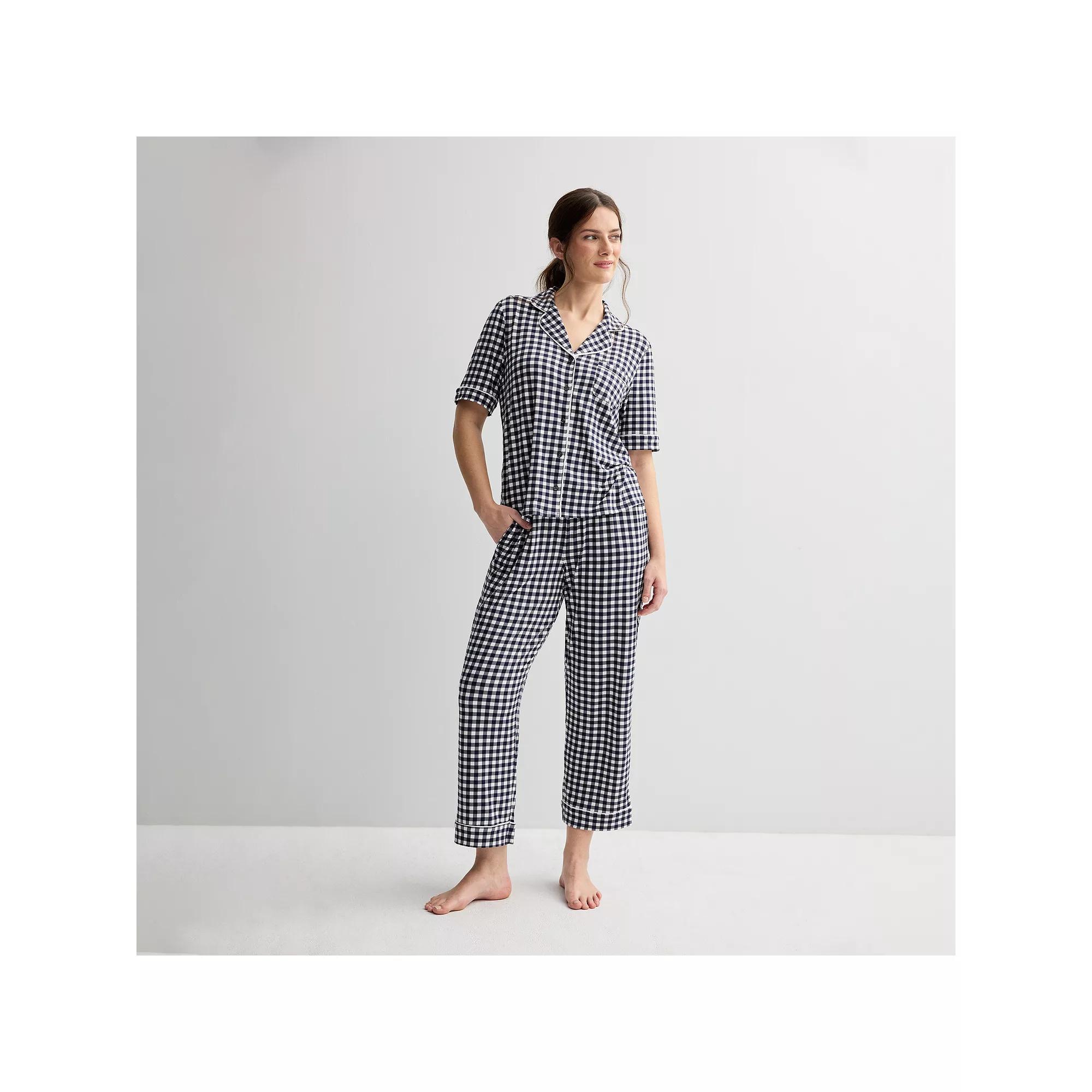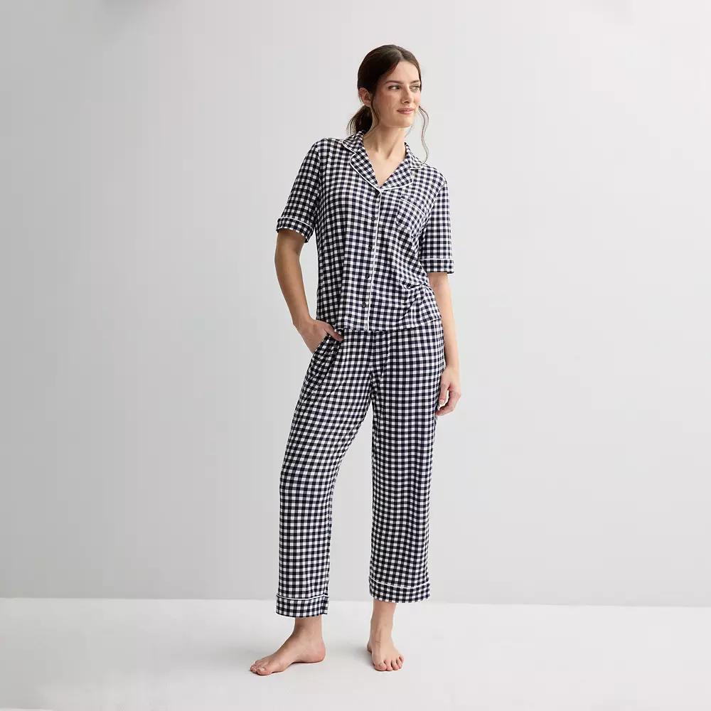 Stay cozy, stay cute! This women's pajama sleep set from Draper James is perfect for cozy nights in. Click on this INTIMATES & SLEEPWEAR GUIDE to find the perfect fit and more!Stay cozy, stay cute! This women's pajama sleep set from Draper James is perfect for cozy nights in. Click on this INTIMATES & SLEEPWEAR GUIDE to find the perfect fit and more!FEATURES Set includes: pajama top and pajama pants Top: Notchneck, elbow sleeves, button closure, 1 chest pocket Pants: 2 side seam pockets, pull-on design Cozy jersey construction UnlinedFIT & SIZING High rise sits below the natural waistline Covered elastic waistband Straight leg opening 18 1/2-in. leg opening 26-in. inseamFABRIC & CARE Polyester, spandex Machine wash and tumble dry low Imported Size: Medium. Color: Navy Gingham. Gender: female. Age Group: adult.