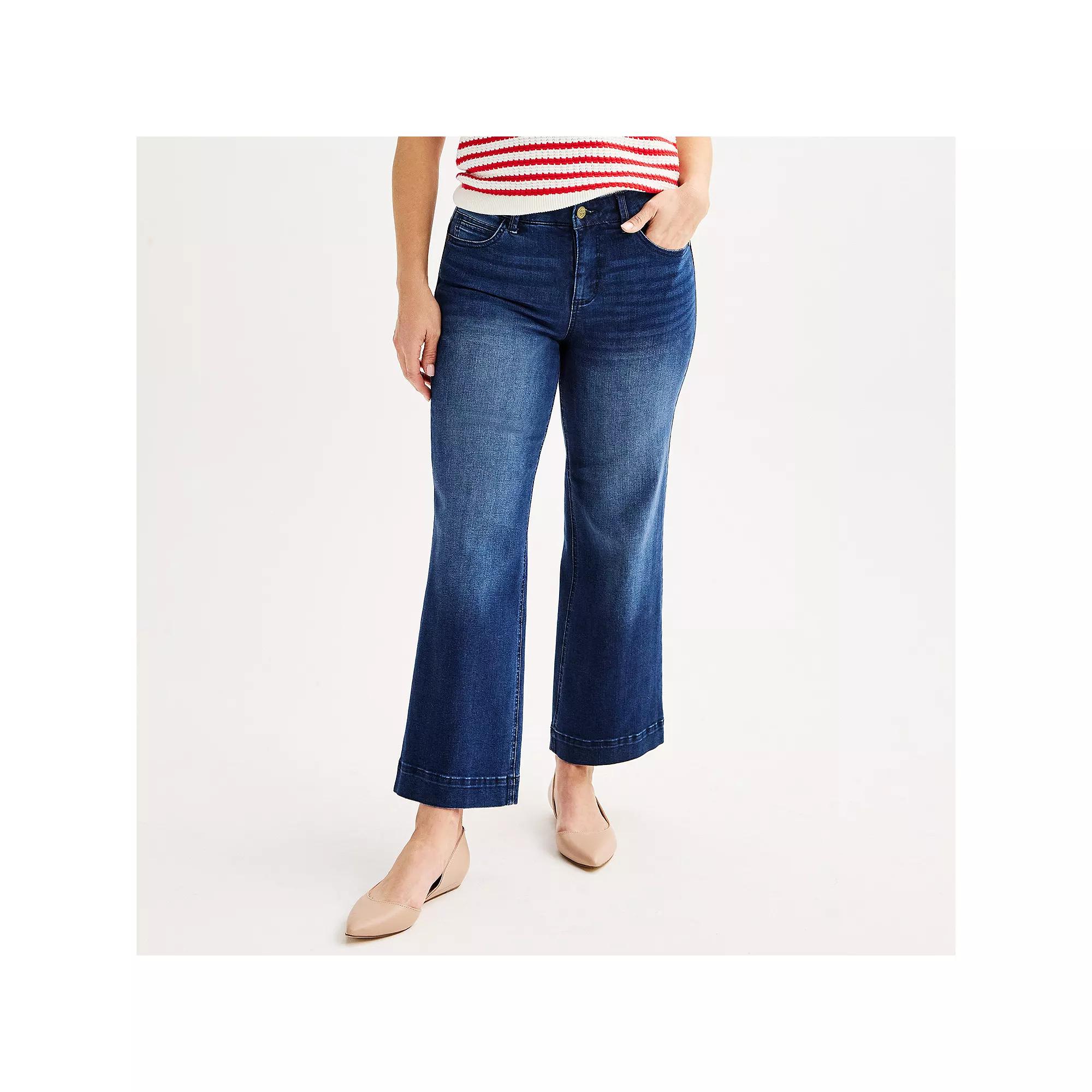 These womens DRAPER JAMES RSVP cropped pants are sure to please. Finding the perfect fit and size for womens clothing requires basic measurements of your chest, waist, hips and inseam. Use this guide to learn more about sizing and everything Kohls has to offer in womens fashion. FEATURES Wide-leg styling Zipper fly Unlined 5-pocketFIT & SIZING 27-in inseam 20-in leg opening Midrise sits on the high hip Relaxed fit through the hip and thighFABRIC & CARE Cotton, polyester, rayon, spandex Machine wash Imported Size: 16. Color: Med Blue. Gender: female. Age Group: adult.