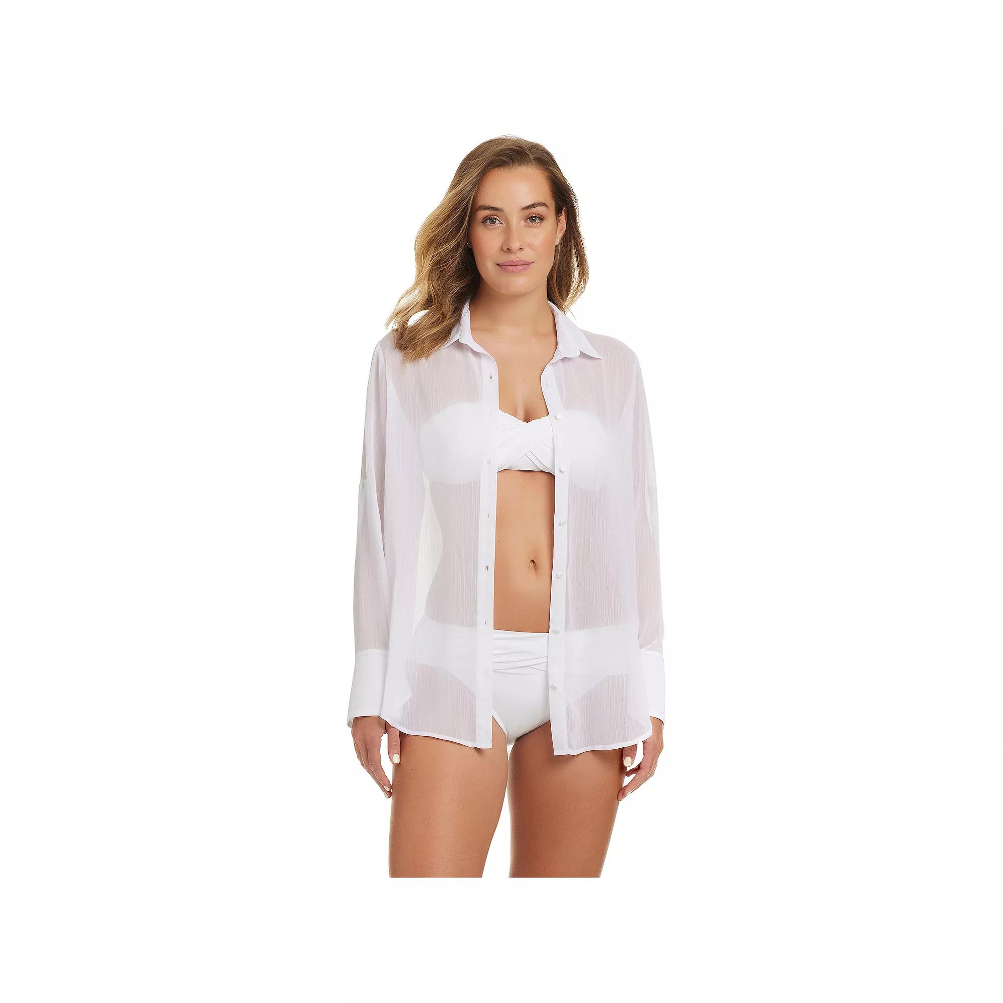 Add a touch of flair to your beach attire with this Women's DRAPER JAMES RSVP Chiffon Button Down Cover Up Shirt.Click on this WOMEN'S GUIDE to find the perfect fit and more!Add a touch of flair to your beach attire with this Women's Draper James Chiffon Button Down Cover Up Shirt.Click on this WOMEN'S GUIDE to find the perfect fit and more!FEATURES Collared neckline Button front Long cuffed sleeves Straight hem Unlined Chiffon constructionFIT & SIZING 29-in. length from shoulder to hemFABRIC & CARE Polyester Hand wash and line dry Imported Size: X Large. Color: White. Gender: female. Age Group: adult.