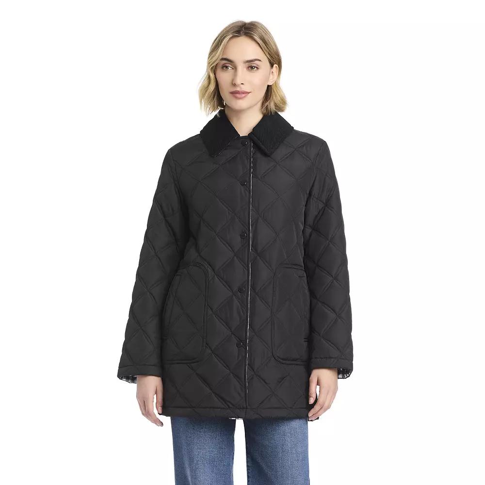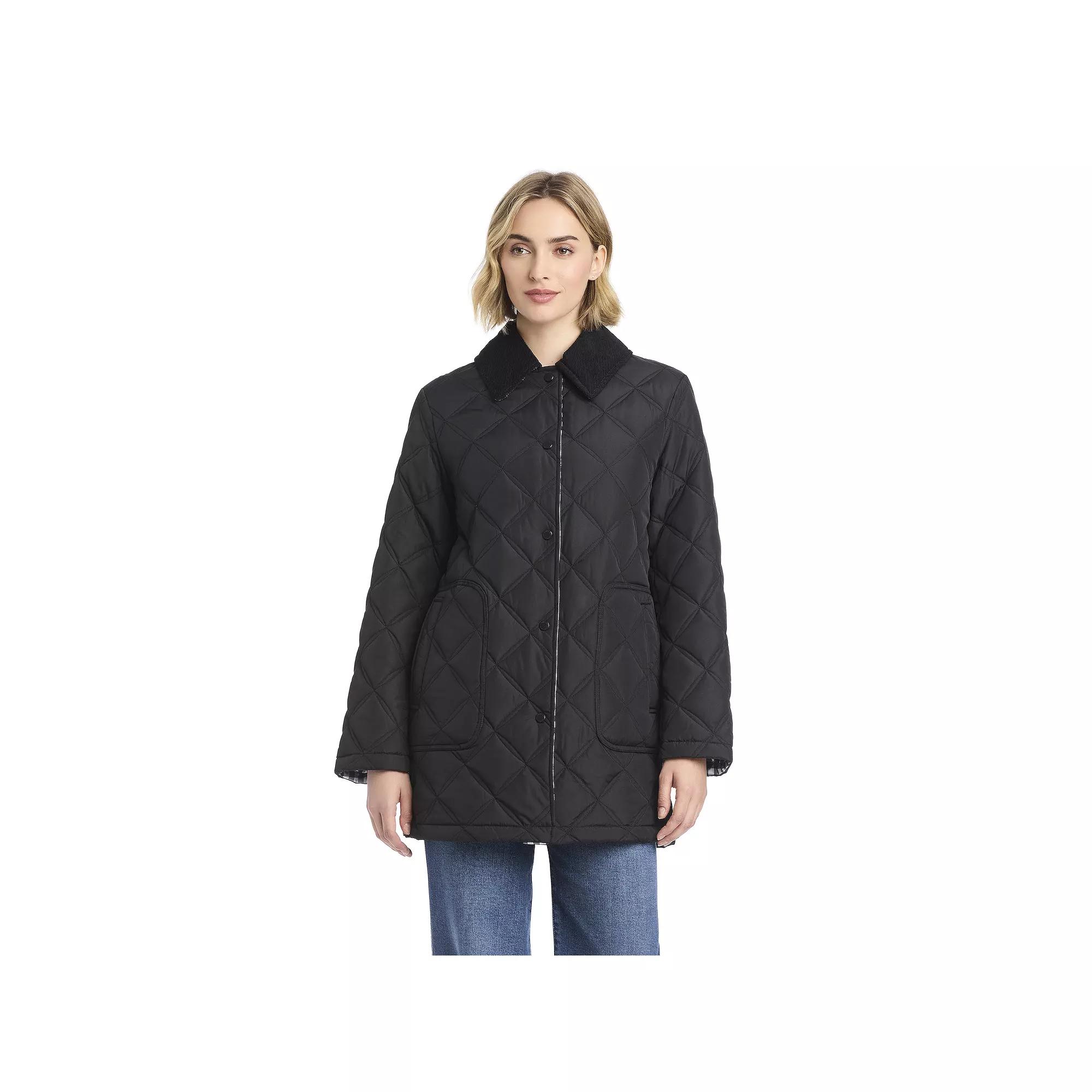 Step into elegance with the versatile silhouette of this coat from DRAPER JAMES RSVP. Perfect for any occasion, its quilted design offers versatility, allowing you to dress it up or down with ease while ensuring you always look your best. Click on this WOMEN'S GUIDE to find the perfect fit and more! - https://www.kohls.com/feature/womens-fit-guide.jsp. FEATURES: Midweight. FIT & SIZE: Intended to hit below the waist with an a-line fit, Designed to hit above the knees, 31-in. length from shoulder to hem. DETAILS: Snap closure, Long sleeves, Large framed wide welt pockets, Imported. MATERIAL & CARE: Polyester, Polyester fill, Fully lined, Polyester lining, Machine wash and tumble dry low. Size: Small. Color: Black. Gender: female. Age Group: adult. Material: POLY BLEND.