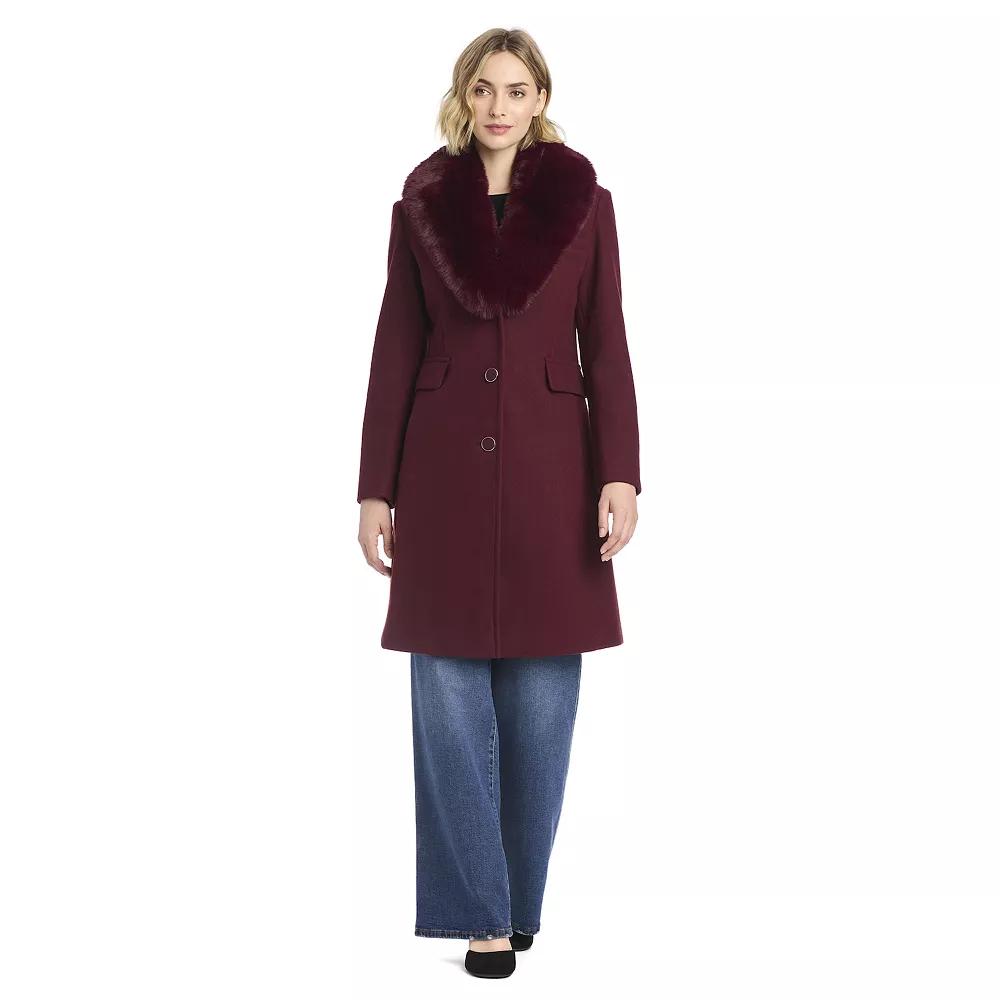 Elevate your wardrobe with the effortlessly chic style of DRAPER JAMES RSVP. This V-neck top offers a flattering fit, making it perfect for layering with your favorite cardigan or pairing with tailored trousers for a polished look. Click on this WOMEN'S GUIDE to find the perfect fit and more! - https://www.kohls.com/feature/womens-fit-guide.jsp. FEATURES: Midweight warmth. FIT & SIZE: Women's Reg, A-line fit, Designed to hit above the knees, 38-in. length from shoulder to hem. DETAILS: 3-button front, Waist Pockets, Imported. MATERIAL & CARE: Soft feel, Polyester, Product contains faux fur, Machine wash and tumble dry low. Size: Xxl. Color: Rhododendron. Gender: female. Age Group: adult. Material: WOOL BLEND.