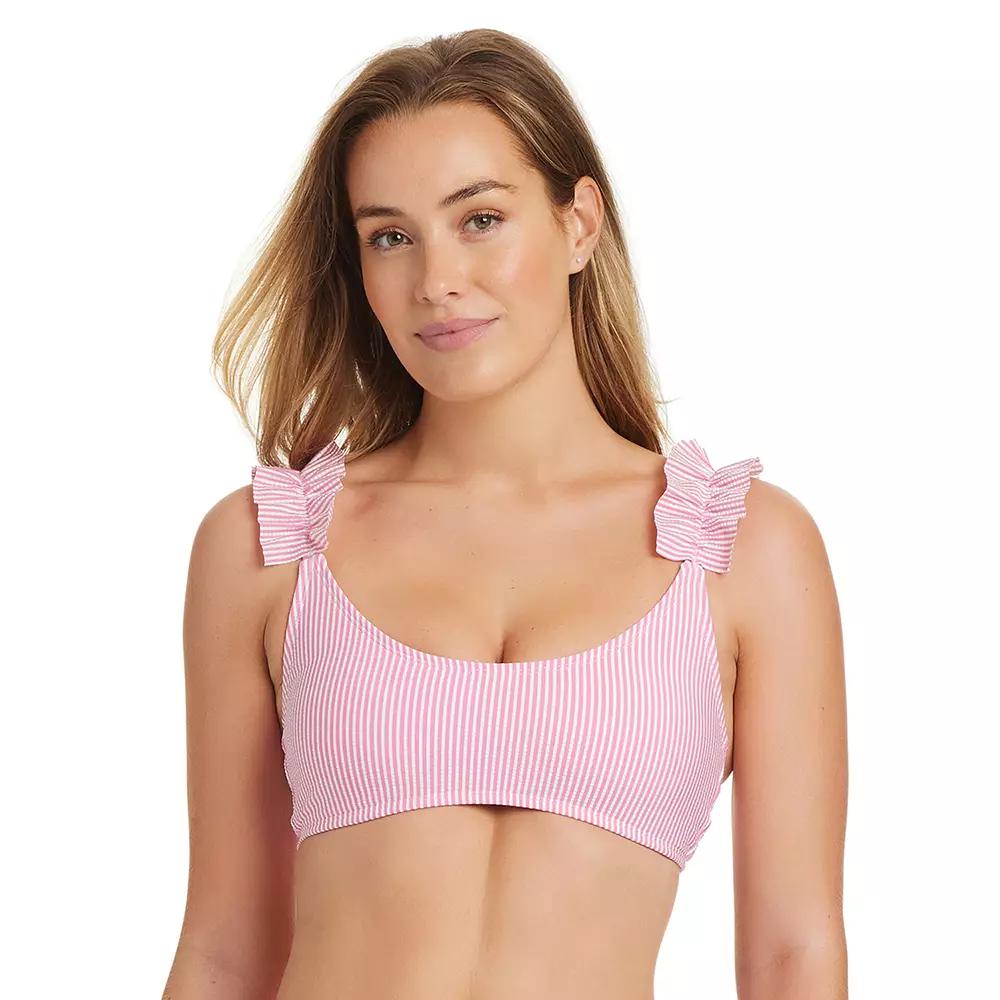 Add a touch of flair to your beach attire with this Women's DRAPER JAMES RSVP Ruffle Strap Bralette Swim Top.Click on this WOMEN'S GUIDE to find the perfect fit and more!Add a touch of flair to your beach attire with this Women's Draper James Ruffle Strap Bralette Swim Top.Click on this WOMEN'S GUIDE to find the perfect fit and more!FEATURES UPF 50+ sun protection Scoopneck Sleeveless Removable cups No closure - pullover styling Fully lined Full coverageFIT & SIZING Adjustable straps Full coverageFABRIC & CARE Polyester, nylon, spandex Lining: polyester Hand wash and line dry Imported Size: Large. Color: Pink Carnation. Gender: female. Age Group: adult.
