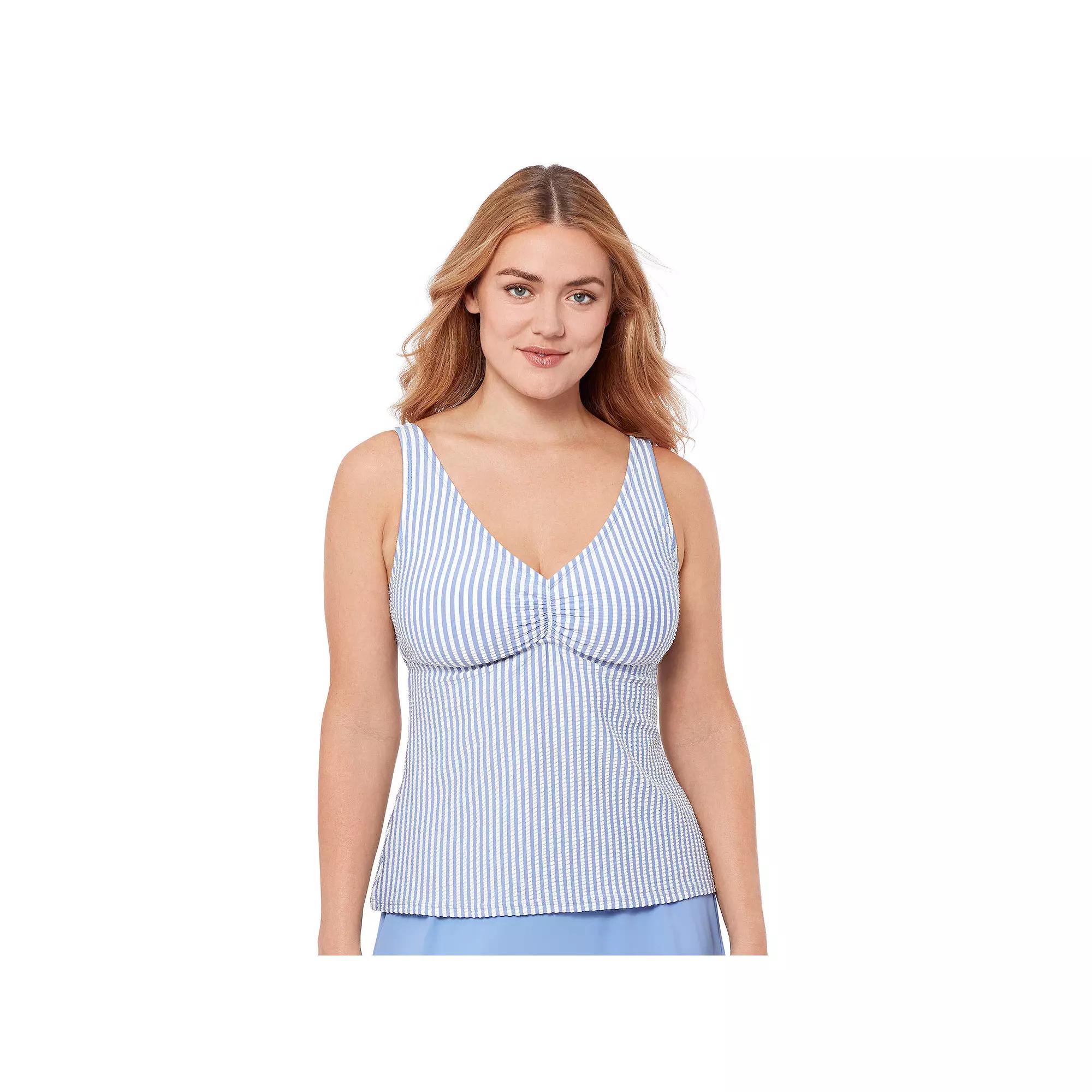 Flatter your figure with this Womens DRAPER JAMES RSVP Shirred Front V Neck Tankini.Click on this WOMENS GUIDE to find the perfect fit and more! Flatter your figure with this Womens DRAPER JAMES RSVP Shirred Front V Neck Tankini. Click on this WOMENS GUIDE to find the perfect fit and more! FEATURES Removable cups Moderate coverage Bust enhancer, waist minimizer Knit, Smooth Straight hem No closure - pull-on styling Sleeveless Partially lined Wireless V-neckFIT & SIZING 26-in. length from shoulder to hem Adjustable StrapsFABRIC & CARE Polyester, nylon, spandex Lining: polyester Hand wash and line dry Imported Size: X Small. Color: Lt Purple. Gender: female. Age Group: adult.