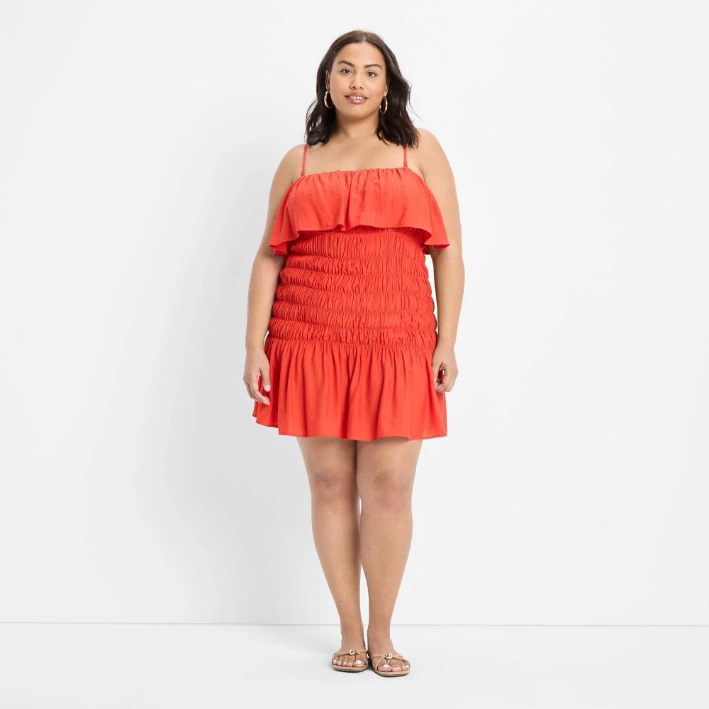 Turn heads during any casual gathering with this Drop Waist Ruffle Mini A-Line Dress from Future Collective™. Made from rayon-recycled polyester linen fabric, this sleeveless A-line dress features a smocked design and ruffles around the neck and back for a delicate, flowy look. It's fashioned in a drop-waist style and boasts a straight neckline to take your fashion game to the next level. You can pair it with your choice of footwear and accessories to complete the ensemble. Future Collective™: Inspired by what’s now to inform what’s next.