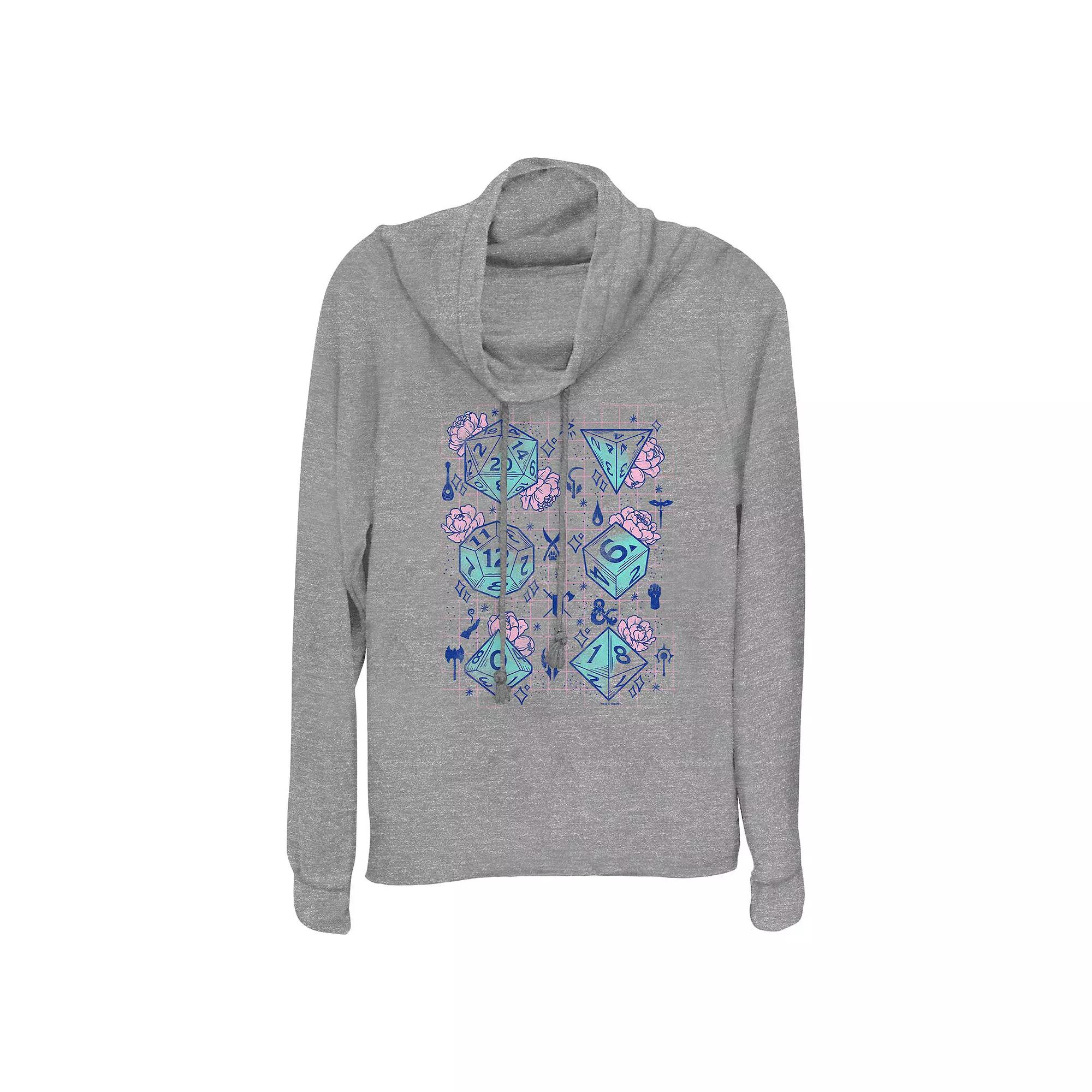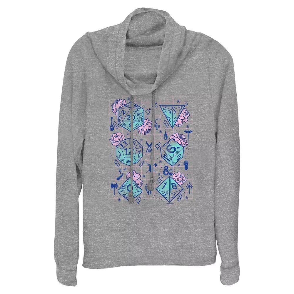 Give your wardrobe a Spring refresh with this Women's Dungeons & Dragons Floral Pastel Dice Cowlneck Graphic Lightweight Long Sleeve.FEATURES Cowlneck Long sleevesFABRIC & CARE Polyester, rayon, spandex Machine wash Imported Size: Small. Color: Gray Heather. Gender: female. Age Group: adult.