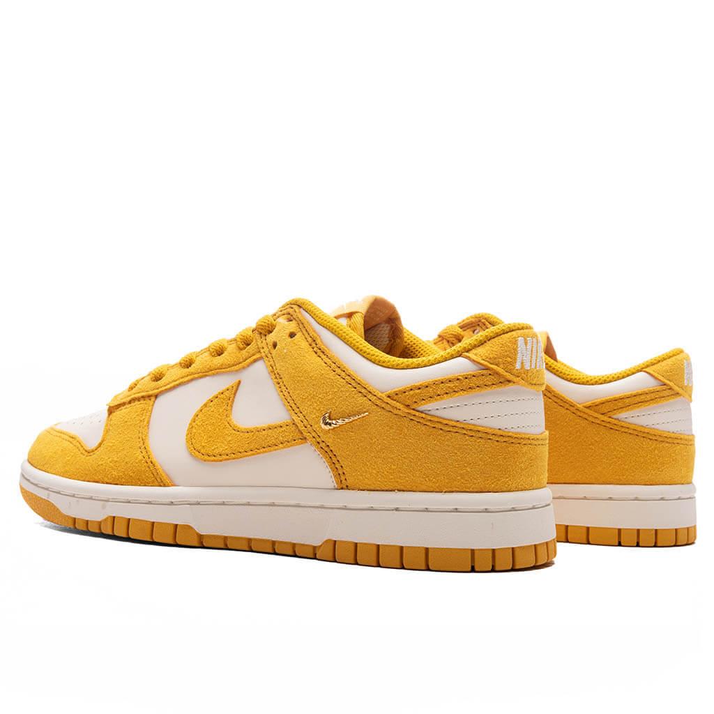 The Women's Dunk Low in 'Dark Sulfur' brings a fresh twist to a classic silhouette. Designed with a leather upper and suede overlays, a miniature gold Swoosh can be found on the outer side panel. Featuring a nylon tongue, padded collar for extra cushioning, and a perforated toe box for enhanced breathability. Embroidered branding and a tongue label add subtle details, while the rubber outsole completes the shoe with traction and grip. Leather upper Suede overlays Nylon tongue Padded collar Embroidered branding Tongue label Miniature gold Swoosh Perforated toe box Rubber outsole All sizes are listed in U.S. Women’s sizing unless stated otherwise Style No: IB4417-101