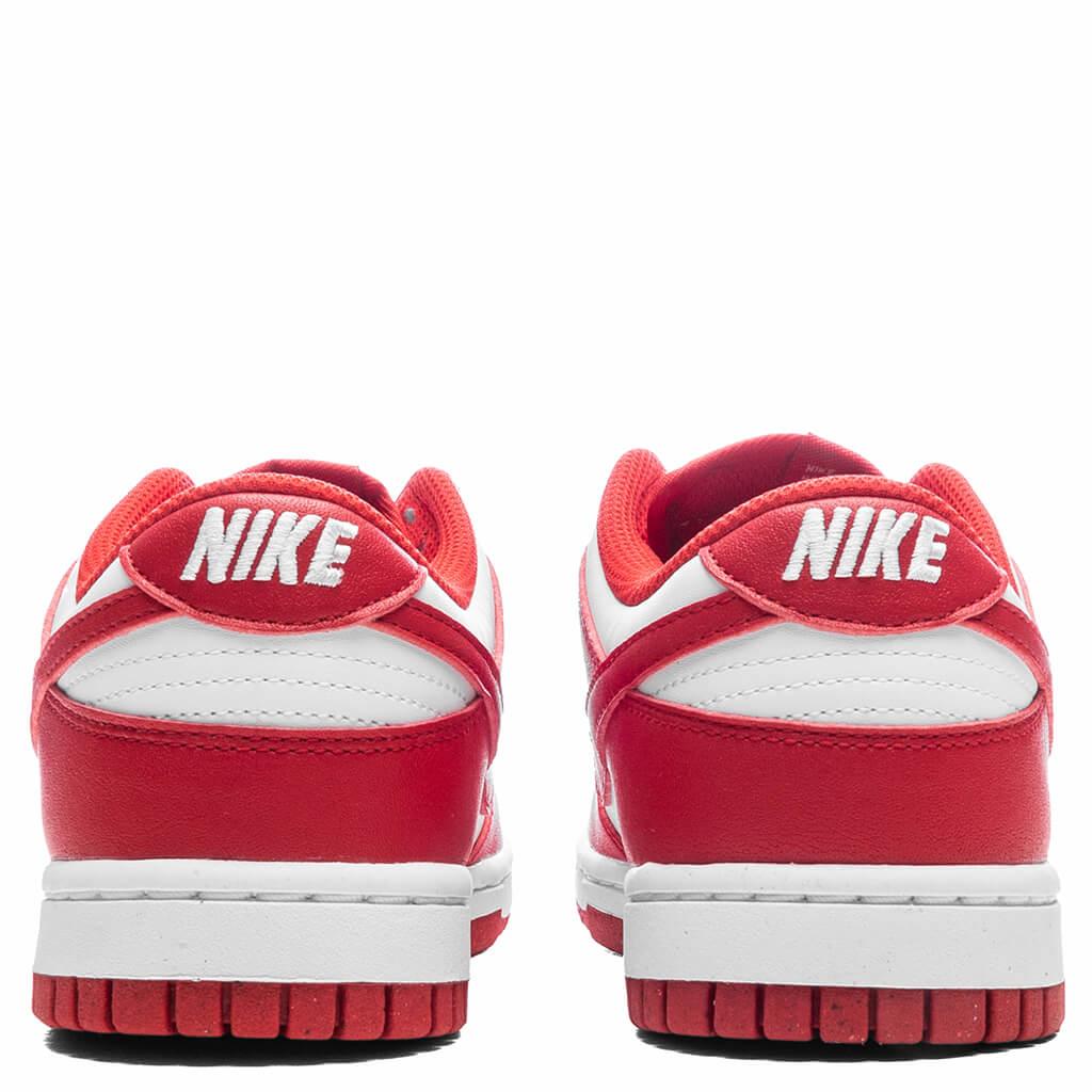 The Dunk Low Women's in White/University Red features a leather upper paired with a nylon tongue, the padded collar adds extra cushioning around the ankle, while the perforated toe box enhances breathability. Embroidered branding and a tongue label add subtle details, and the rubber outsole ensures traction and grip. Perfect for everyday wear, this classic silhouette brings timeless style with a contemporary twist. Leather upper Nylon tongue Padded collar Embroidered branding Tongue label Perforated toe box Rubber outsole All sizes are listed in U.S. Women’s sizing unless stated otherwise Style No: DD1873-116