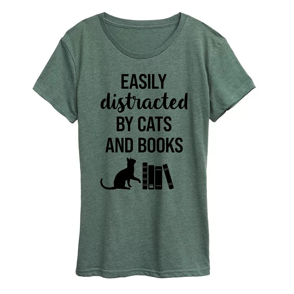 She will love showing off her style with this Womens Easily Distracted Cats Books Graphic Tee. FEATURES Short sleeves CrewneckFABRIC & CARE Solid Color: Cotton ; Heather Colors: Cotton/Polyester Machine wash Imported Size: Small. Color: Green. Gender: female. Age Group: kids.