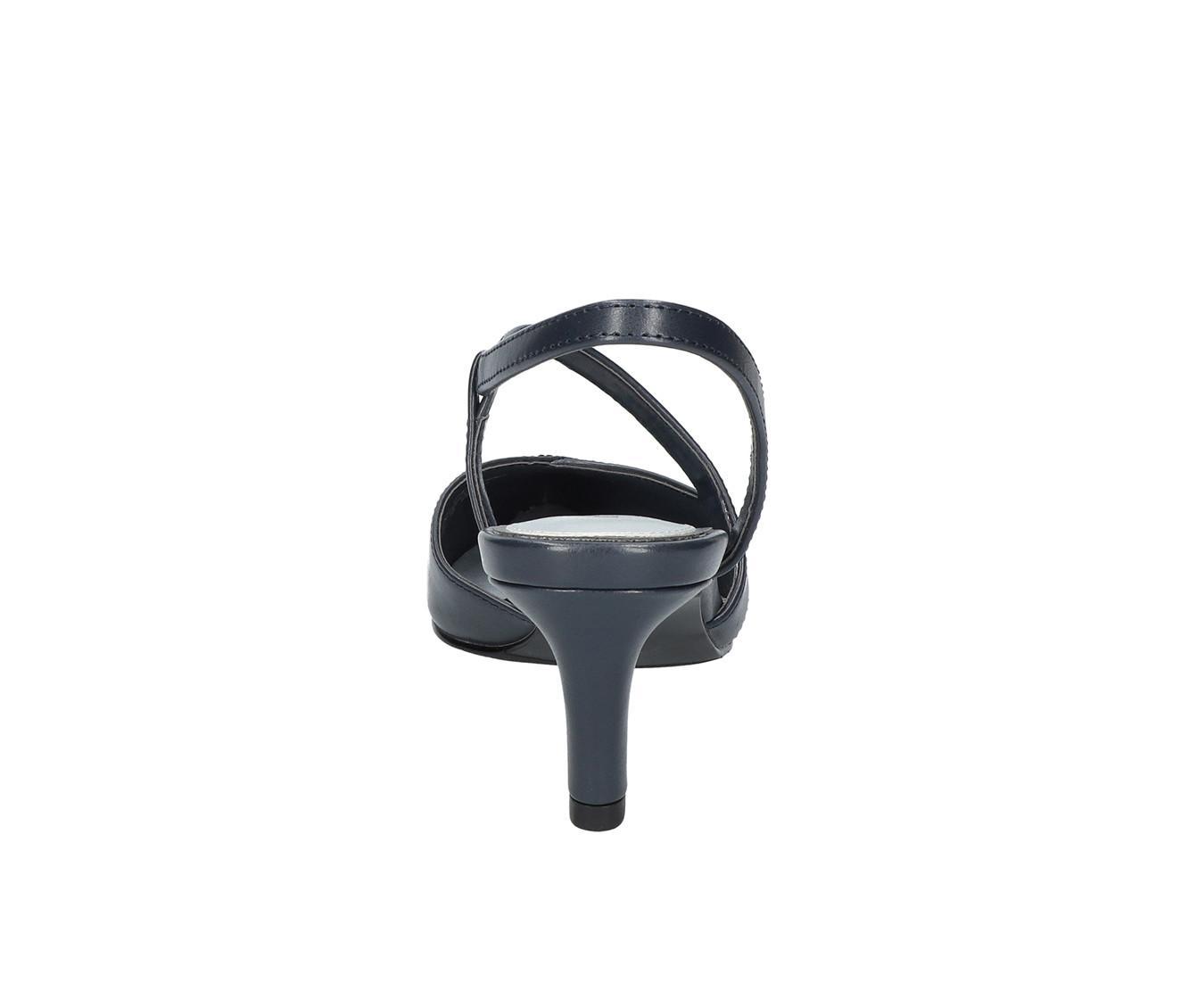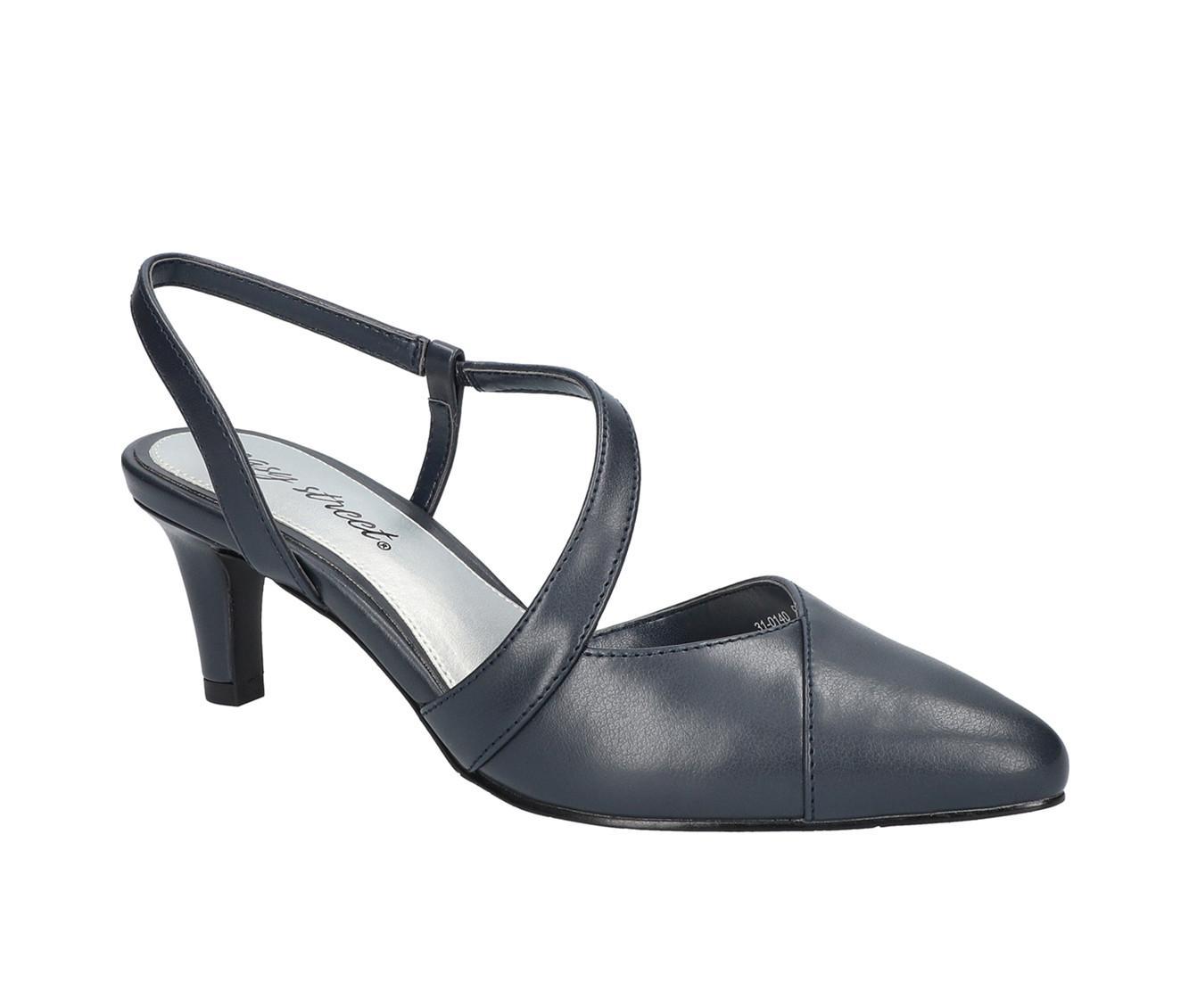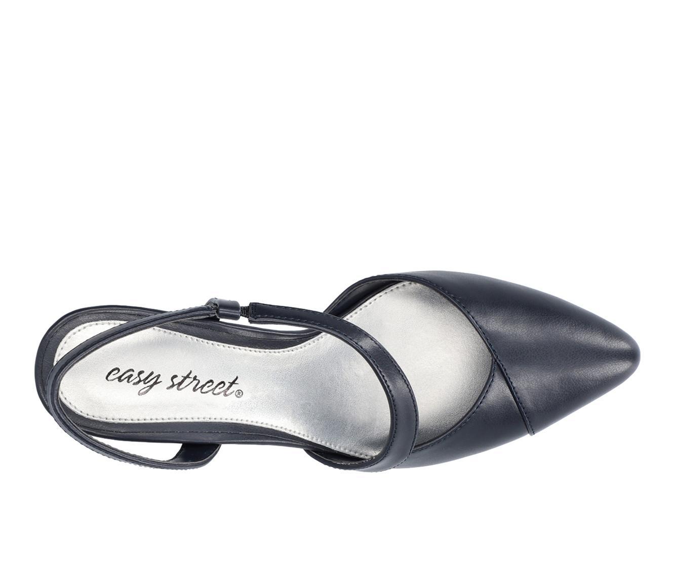 Reward yourself with the Emerald slingback pump by Easy Street. Designed to be on trend, the asymmetrical upper design will add a sophistication to your outfit. The Easy Flex outsole combined with a heel to toe padded insole will help make you look and feel great throughout the day! The Lamy and satin uppers offer a stone detailing to make the Emerald a perfect companion for a celebratory occasion.