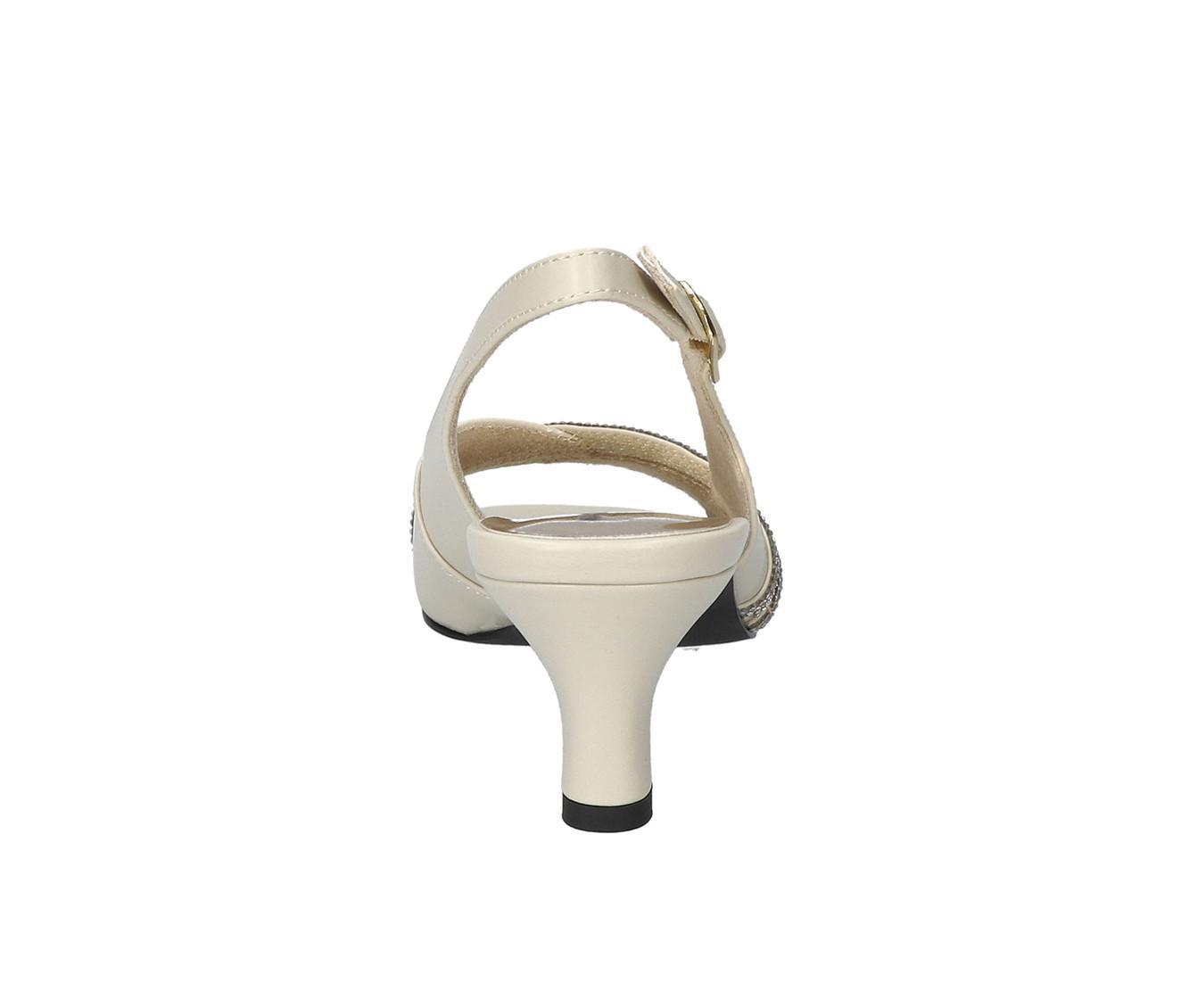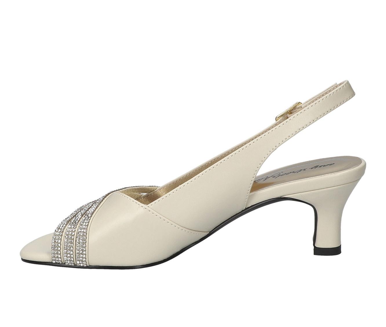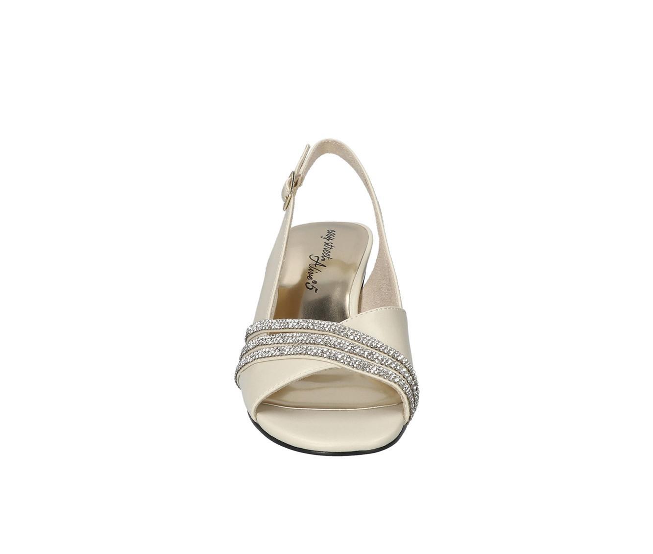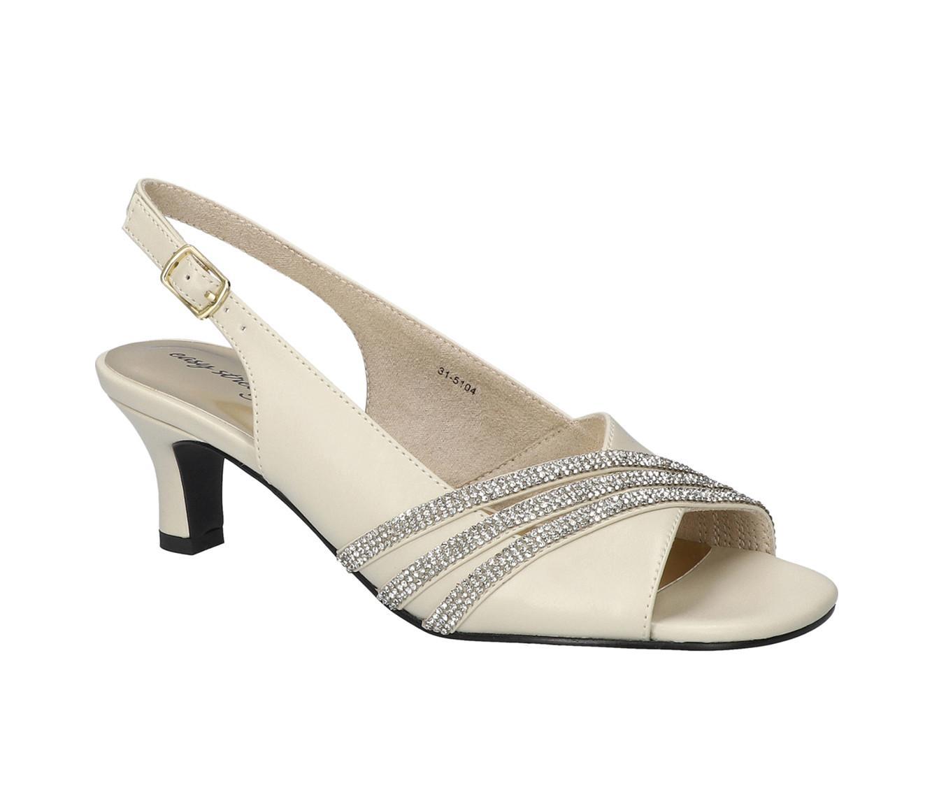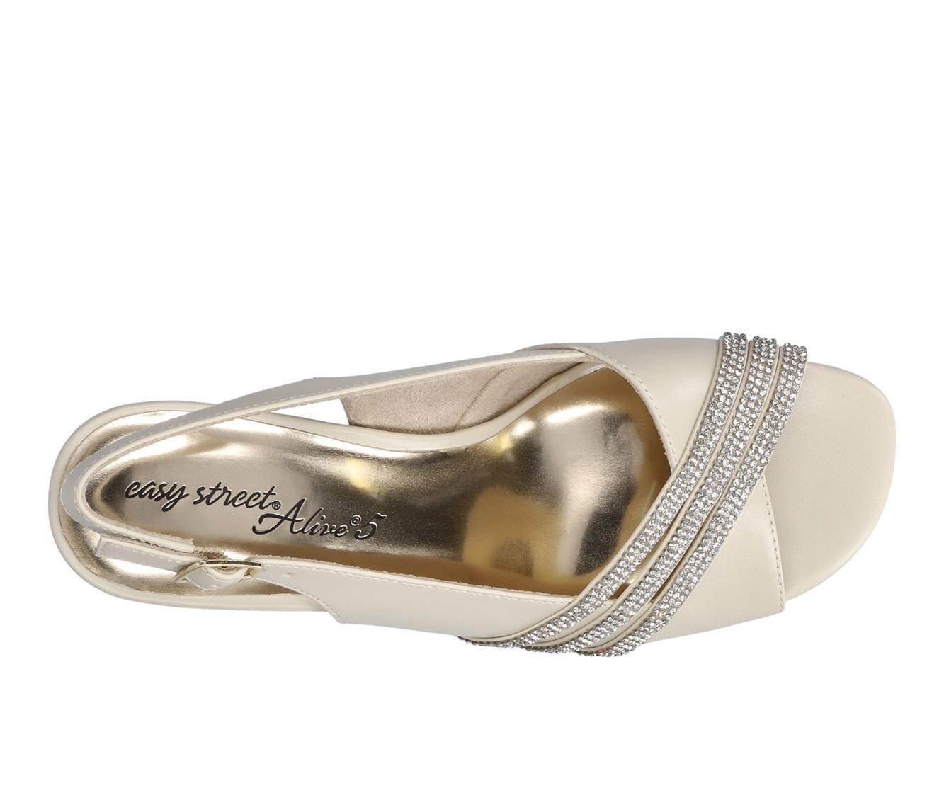 Elevate your look with this stunning low heel Teton by Easy Street. Designed with an open toe and trendy multi-strip overlay, these dress sandals exude elegance and sophistication. Available in both timeless everyday colors and evening materials that are embellished with exquisite stone detailing. Padded insole provides added comfort and adjustable slingback allows for a custom fit.