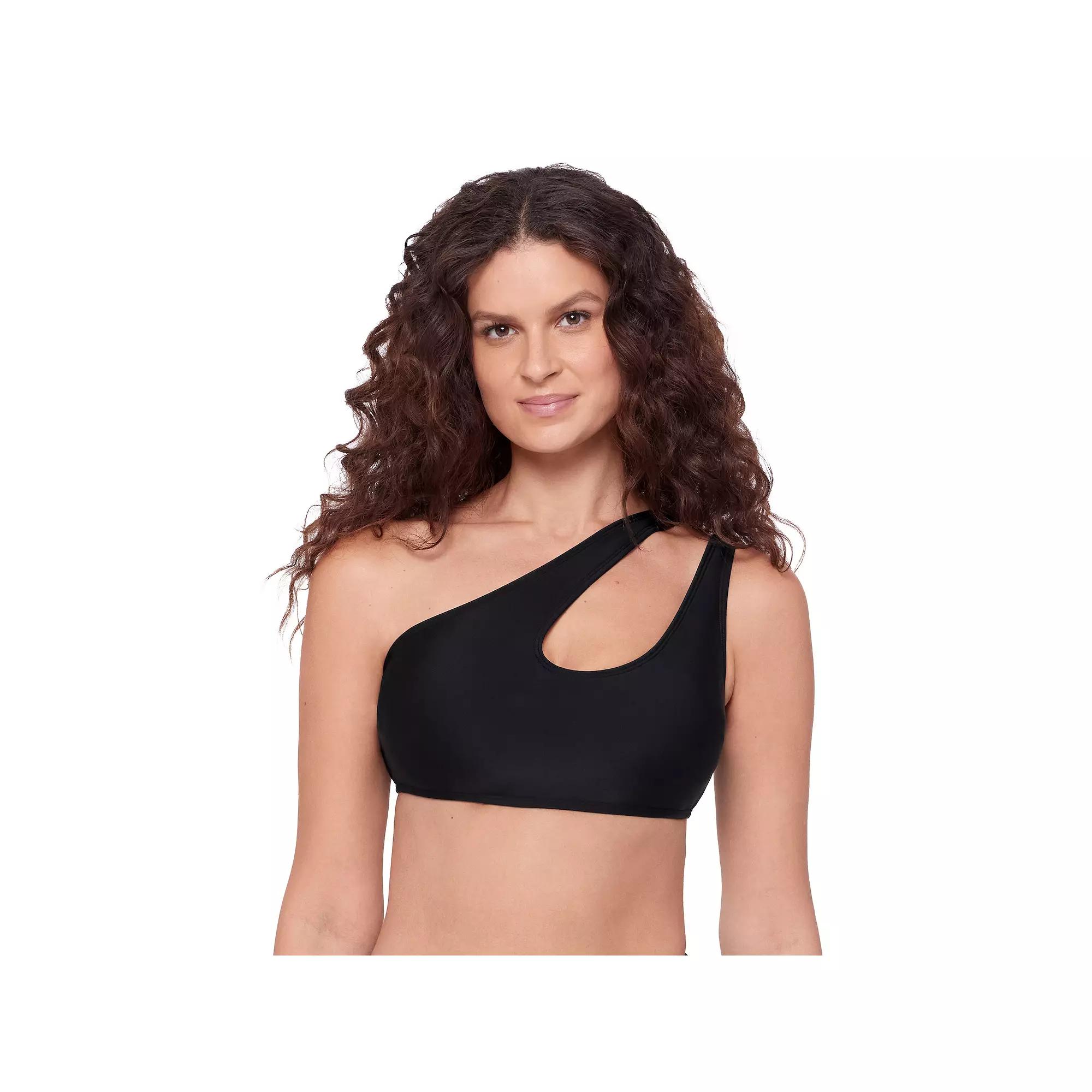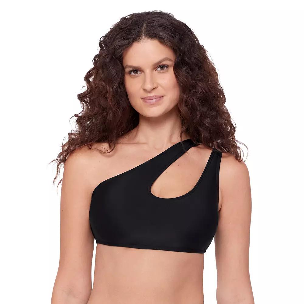 Get ready for a swim day with this women's Eco Beach cutout one-shoulder bikini top. Click on this WOMEN'S GUIDE to find the perfect fit and more! - https://www.kohls.com/feature/womens-fit-guide.jsp. FEATURES: One-shoulder neckline, Sleeveless, Moderate coverage, Removable cups, Wireless, Fully lined, Pullover styling. FABRIC & CARE: 80% recycled nylon, 20% spandex, Lagoon & palm: 90% recycled polyester, 10% spandex, 50% recycled polyester, 50% polyester, Hand wash and line dry, Imported. RESPONSIBLE Contains recycled materials. Size: Large. Color: Black. Gender: female. Age Group: adult. Material: POLY BLEND.