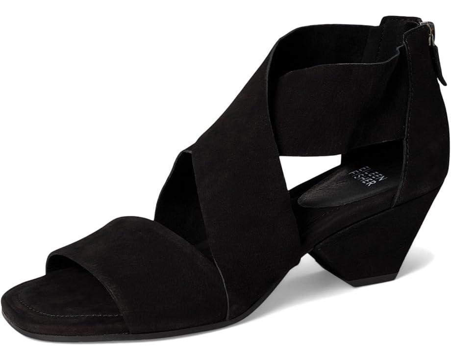 The Eileen Fisher® Junie is a perfect summer sandal with soft unlined leather straps and a back zipper for easy entry. It has an asymmetrical heel wrapped in leather, for poised elevation.