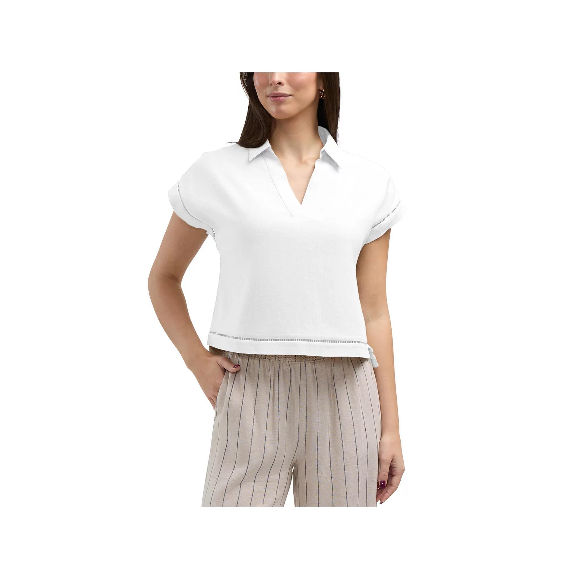 Step into style with this Womens Ellen Tracy Linen Collared Short Sleeve Shirt.Click on this WOMENS GUIDE to find the perfect fit and more!Step into style with this Womens Ellen Tracy Linen Collared Short Sleeve Shirt. Click on this WOMENS GUIDE to find the perfect fit and more!FEATURES Barrel cuffs Raglan sleeves Short sleeves Unlined V-neckFIT & SIZING 22-in. length from shoulder to hemFABRIC & CARE Viscose, linen Machine wash and tumble dry low Imported Size: Large. Color: White. Gender: female. Age Group: adult.