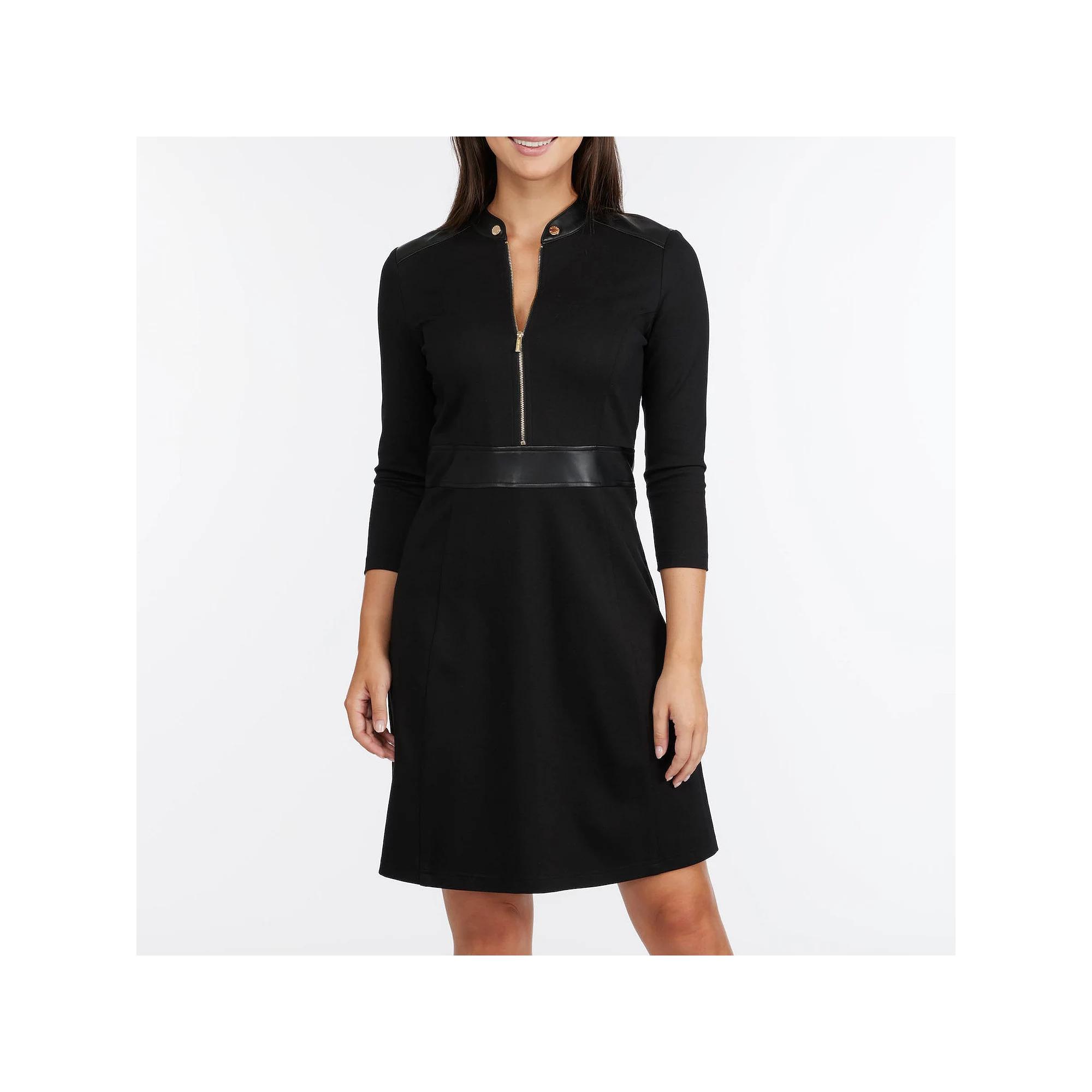 Round button neckline Three-quarter sleeves Front & back zipper Trim: Polyurethane Polyester, viscose & spandex Pullover style Imported SIZE & FIT A-line silhouette About 36 from shoulder to hem Model shown is 510 (177cm) wearing US size Small. Womens - W Sportswear > Saks Off 5th. Ellen Tracy. Color: Black. Size: L.