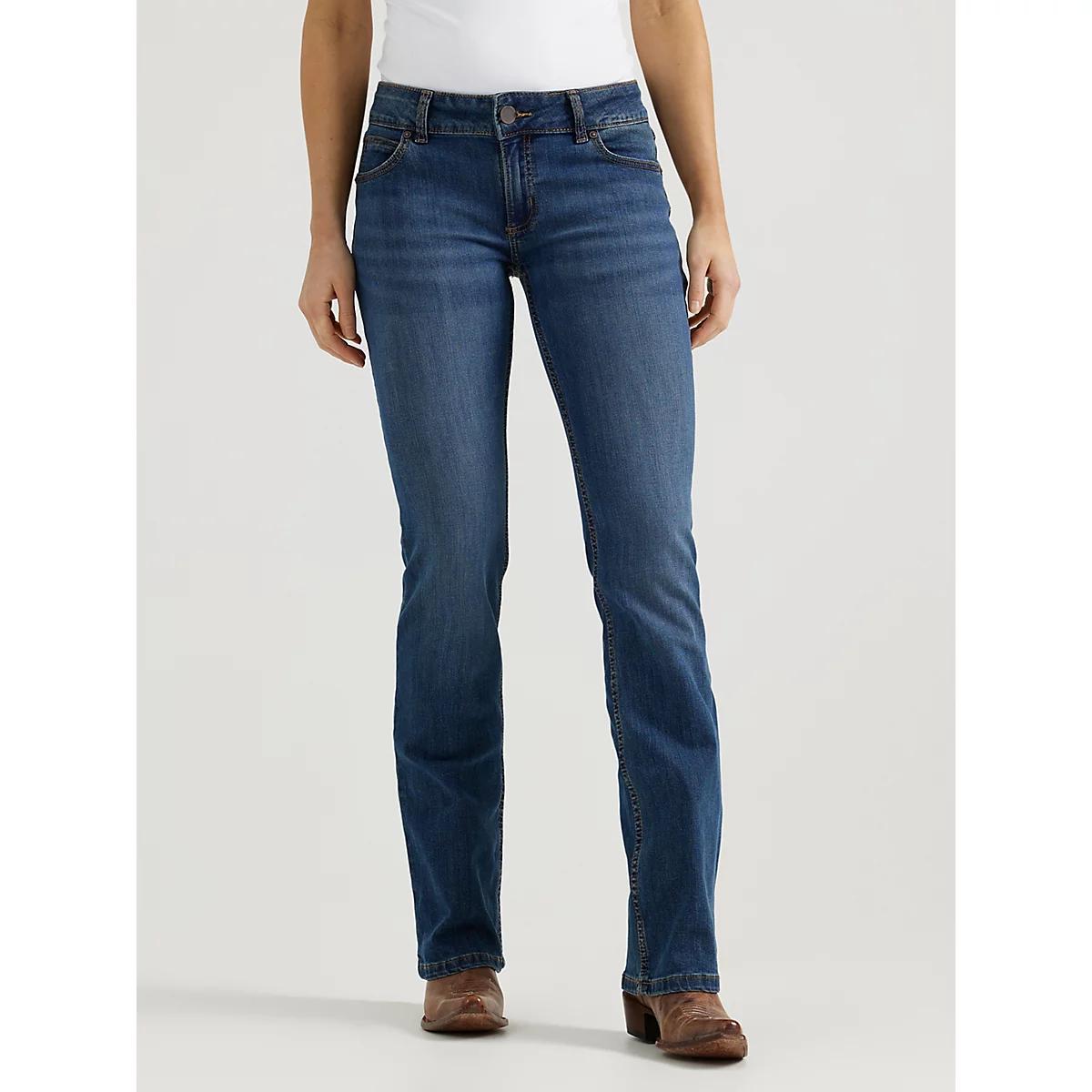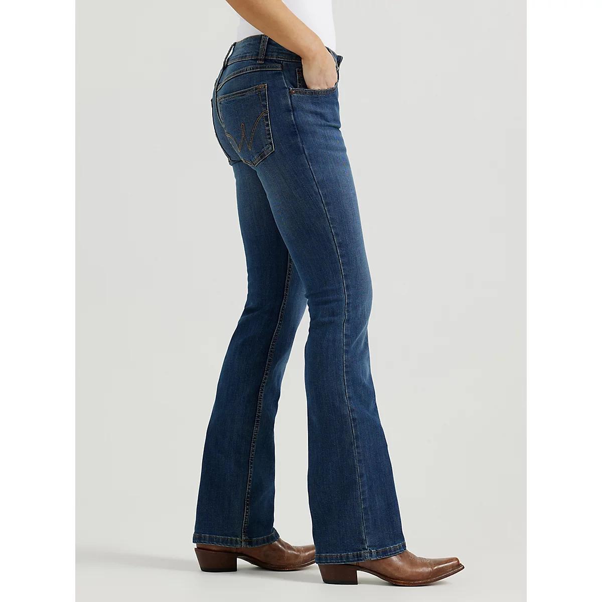 CLASSIC AND SIMPLE BOOTCUT STYLELook no further than our essential bootcut for classic women's everyday jeans. Sitting comfortably below the waist, our women's mid-rise bootcut jeans offer a bit of stretch for casual denim that works for every occasion. The classic bootcut leg opening makes this versatile style perfect for pairing with boots or heels for an elevated look that enhances your figure. Made with the quality you've come to expect, Wrangler® jeans for women are a closet staple you can't miss out on.