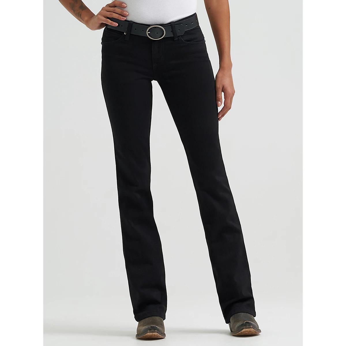 CLASSIC AND SIMPLE BOOTCUT STYLELook no further than our essential bootcut for classic women's everyday jeans. Sitting comfortably below the waist, our women's mid-rise bootcut jeans offer a bit of stretch for casual denim that works for every occasion. The classic bootcut leg opening makes this versatile style perfect for pairing with boots or heels for an elevated look that enhances your figure. Made with the quality you've come to expect, Wrangler® jeans for women are a closet staple you can't miss out on.