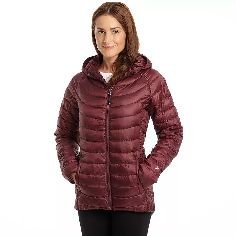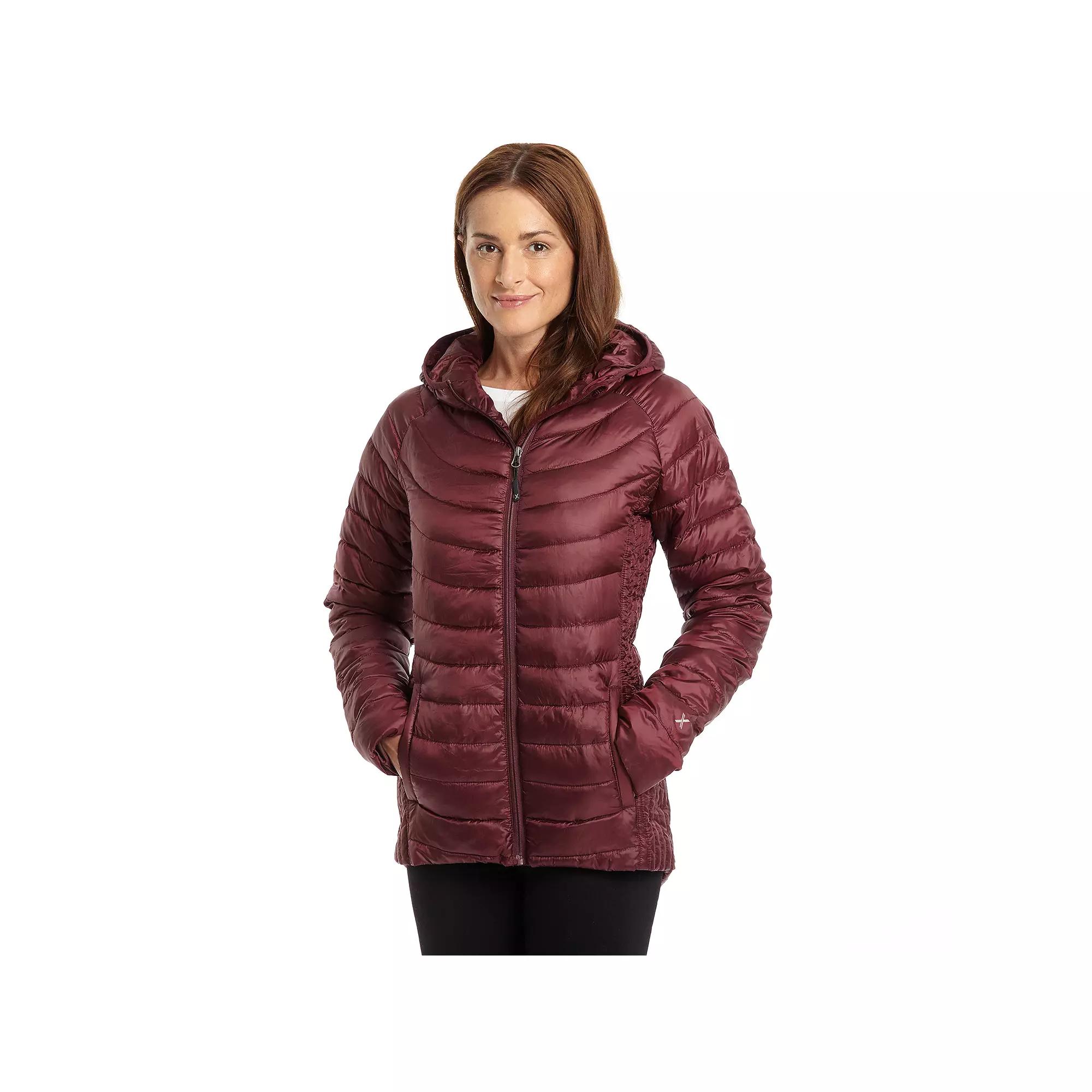 This womens Excelled puffer jacket features low bulk, highly compressed insulation that traps heat efficiently, even when wet and it provides thermostat-like warmth. Attached hood Zip front Long sleeves Wind resistant 2-pocket FIT & SIZING 29-in. approximate length from shoulder to hem Designed to hit above the knees Midweight FABRIC & CARE Polyester Machine wash Imported Size: Small. Color: Red. Gender: female. Age Group: adult. Pattern: Solid.