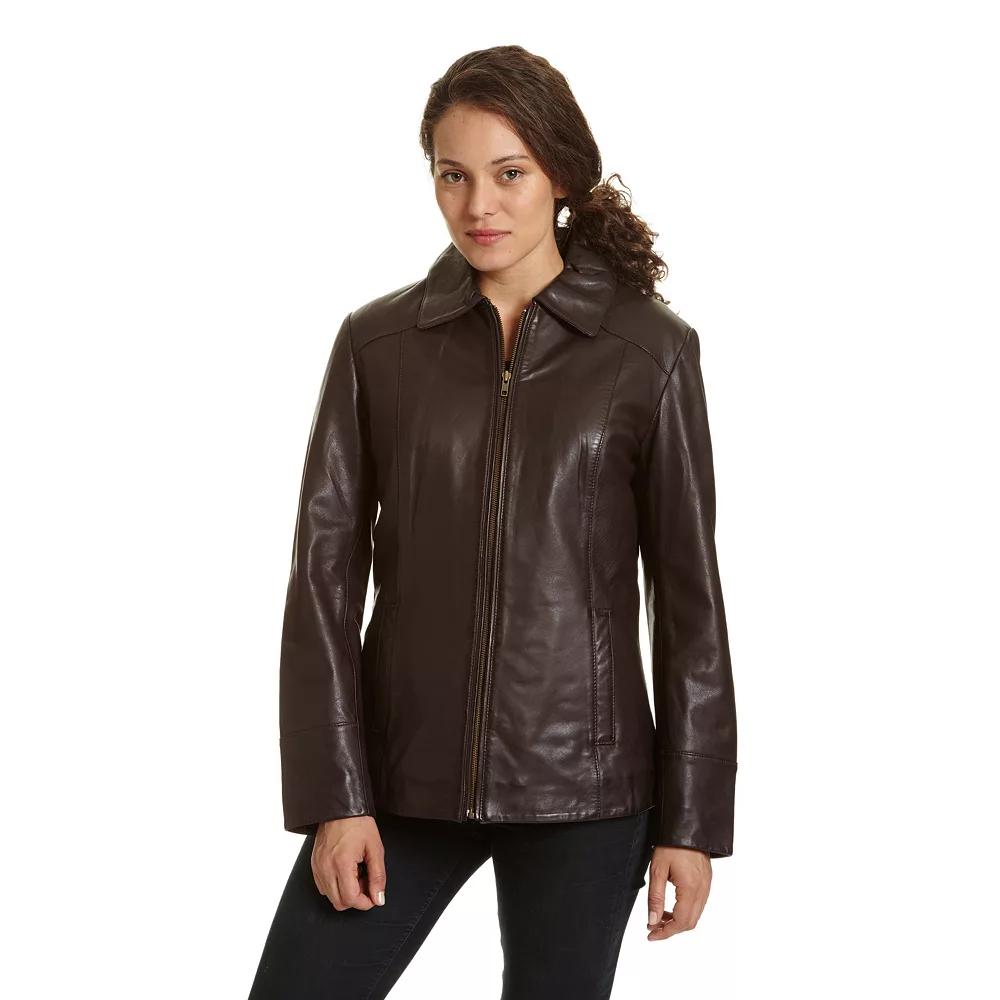 Click on this WOMENS GUIDE to find the perfect fit and more!Zip frontLong sleeves2-pocketFit & Sizing:Princess seamsFabric & Care:Shell: lambskin leatherLining: polyesterProfessional leather cleanImported Size: X Large. Color: Brown. Gender: female. Age Group: adult.