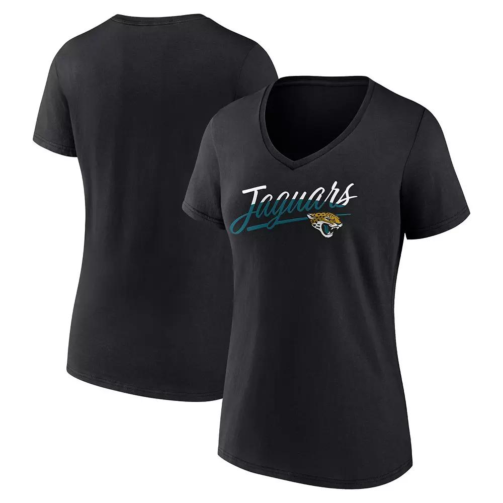 Stock up on casual Jacksonville Jaguars apparel with this Slice Script T-shirt. Made by Fanatics, it features the team name printed in a two-tone design that accentuates the Jacksonville Jaguars logo. The V-neckline adds a stylish touch to this solid tee.Stock up on casual Jacksonville Jaguars apparel with this Slice Script T-shirt. Made by Fanatics, it features the team name printed in a two-tone design that accentuates the Jacksonville Jaguars logo. The V-neckline adds a stylish touch to this solid tee.PRODUCT FEATURESV-neckMachine wash, tumble dry lowScreen print graphicsShort sleeveImportedOfficially licensedBrand: FanaticsMaterial: 100% Cotton Size: 2X. Color: Black. Gender: female. Age Group: adult.