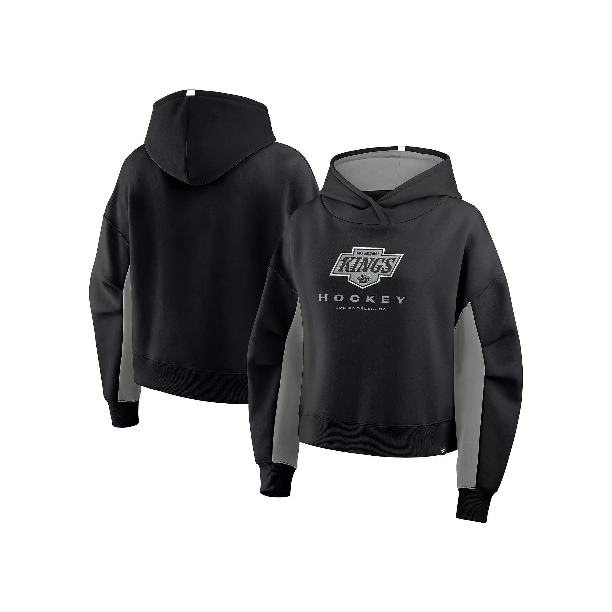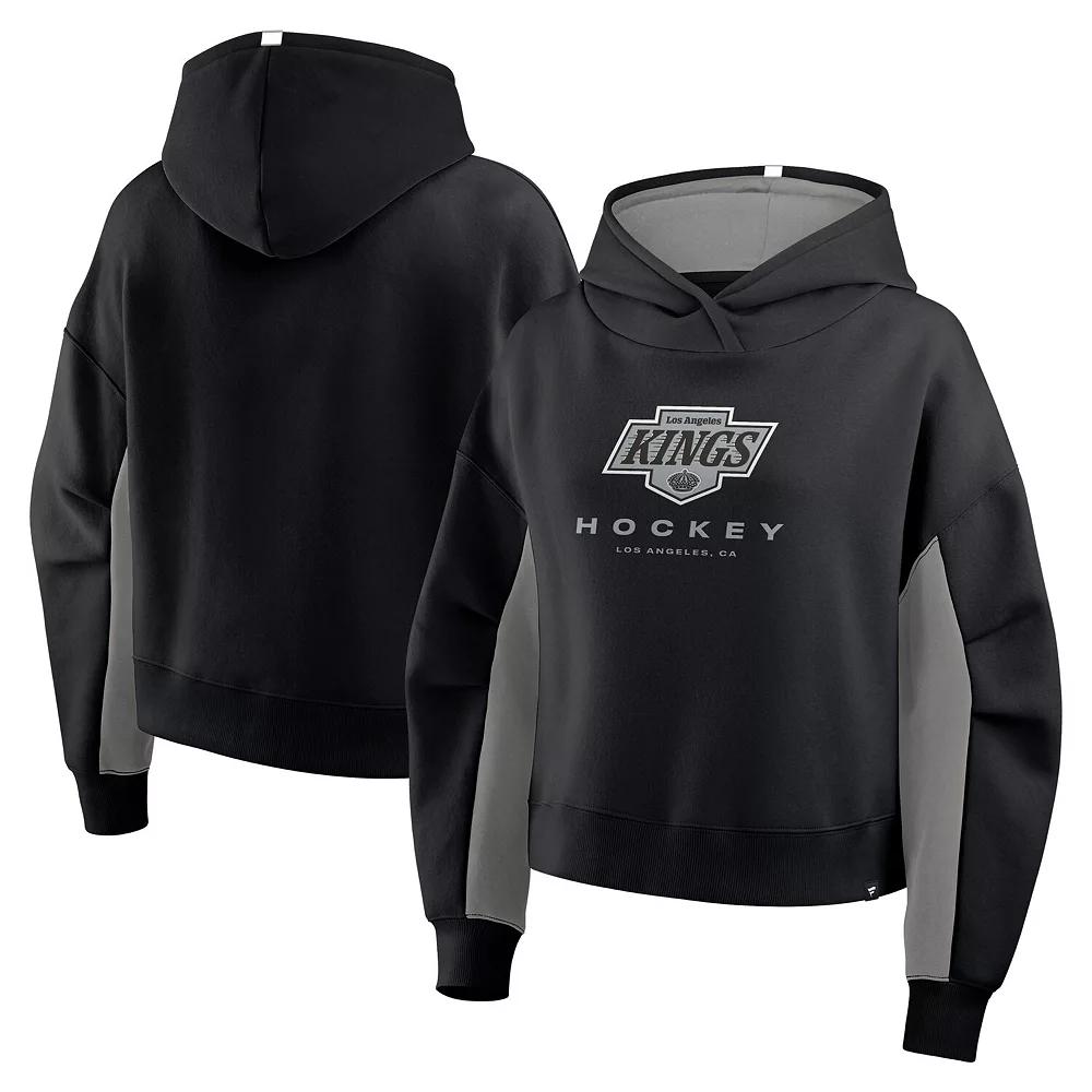 Stay comfy in fashionable Los Angeles Kings outerwear with this Back Check Boxy Hoodie by Fanatics. Heavyweight fleece fabric delivers cozy warmth and an extra-soft feel. The relaxed, boxy fit and dropped shoulders provide ample room for laid-back movement in this Los Angeles Kings hoodie. Brand: Fanatics. Hip length (Measures approx. 24). Material: 60% Cotton/40% Polyester - Body; 100% Cotton - Hood Lining. Machine wash, tumble dry low. Fleece fabric (290gsm) has a heavyweight feel. Franchise's location embroidered across the front. Embroidered twill team logo patch. Imported. Dropped shoulder seams create a laid-back silhouette. Hooded. Two-panel hood with overlap at center front and contrast-color lining. Officially licensed. Long sleeve. Pullover. Relaxed, Boxy Fit: Loose and roomy across the chest, shoulders and body. Color: Kgs Black. Gender: female. Age Group: adult.