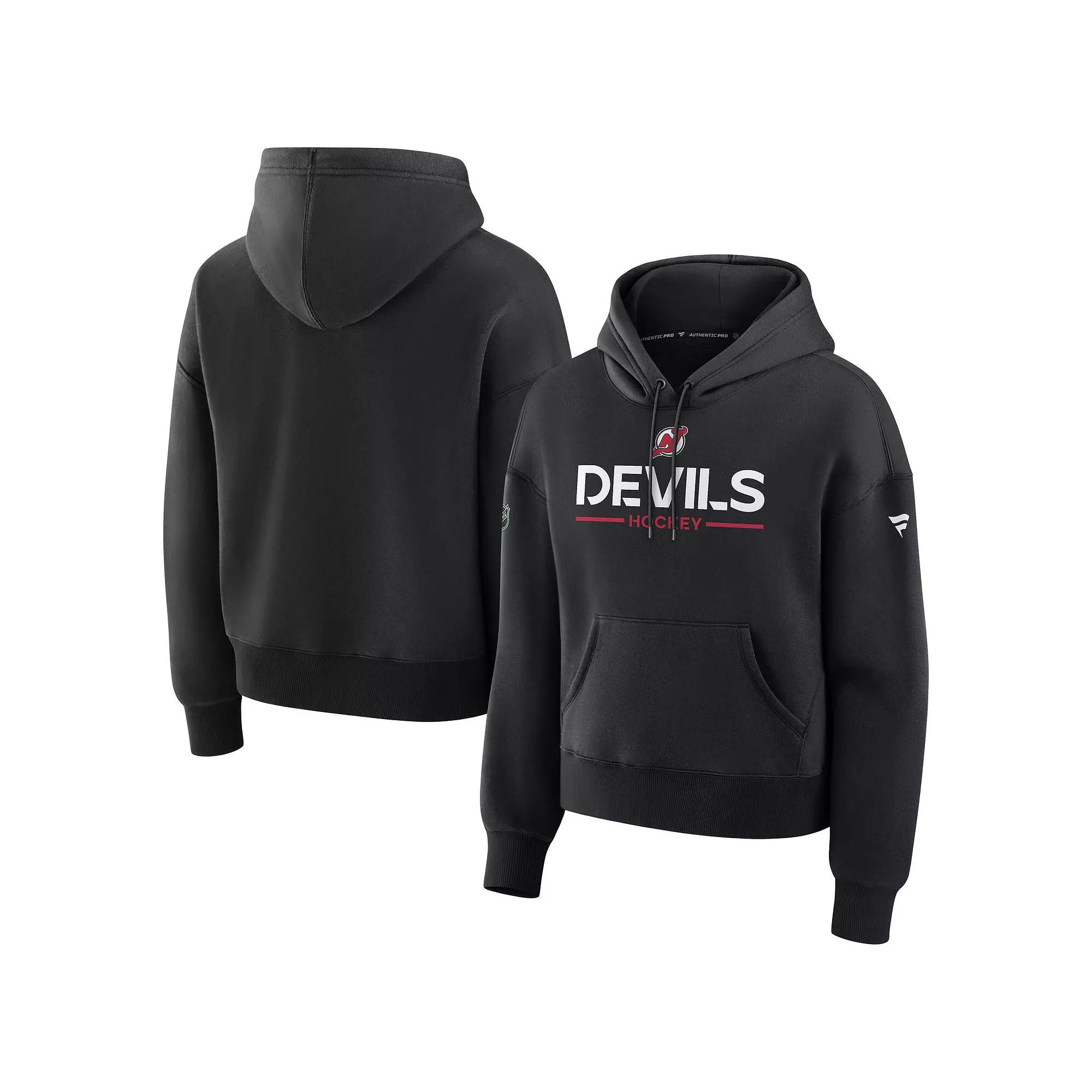 Stay warm and comfy in this New Jersey Devils Authentic Pro Primary Pullover Hoodie by Fanatics. Its heavyweight fleece fabric provides an extra layer of softness and comfort. An adjustable hood and pouch pocket add more coverage to this roomy New Jersey Devils hoodie. Brand: Fanatics. Relaxed Fit: Loose and roomy across the chest, shoulders and body. Officially licensed. Front pouch pocket. Hooded. Team name and logo screen printed across the chest. Imported. Long sleeve. Dolman sleeves have a wide armhole opening. Material: 60% Cotton/40% Polyester. Fleece fabric has a heavyweight feel (290gsm). Machine wash, tumble dry low. Authentic Pro collection mirrors the gear of players, coaches and trainers. Pullover. Color: Nhl Black. Gender: female. Age Group: adult.