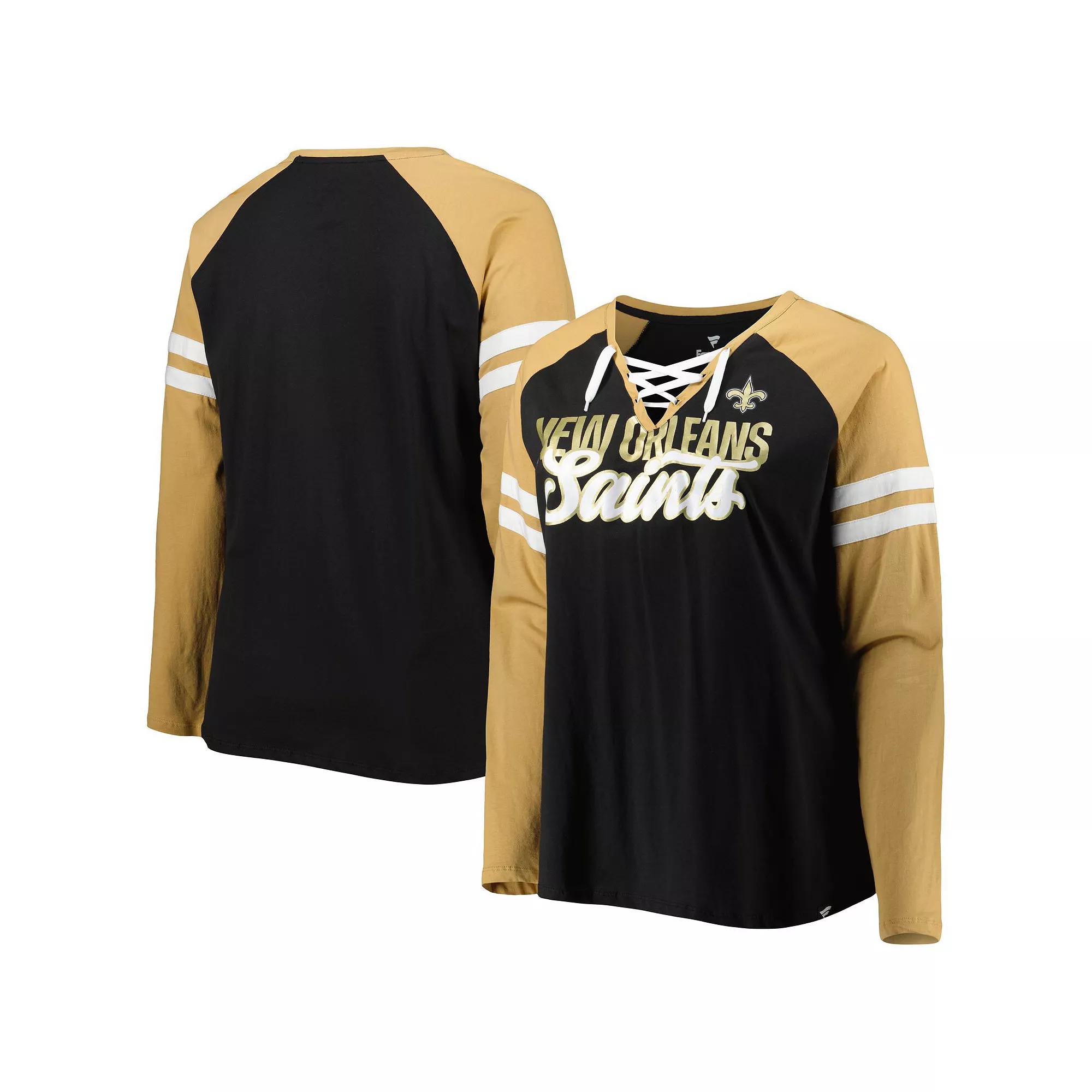 Wear your favorite teams colors boldly with this New Orleans Saints True to Form V-neck T-shirt from Fanatics Branded. Its two-tone design features printed New Orleans Saints graphics accentuated by the lace-up neckline and sleeve stripes. Plus, the raglan sleeves create some extra room for more flexible movement. Other Sports Fan Shop