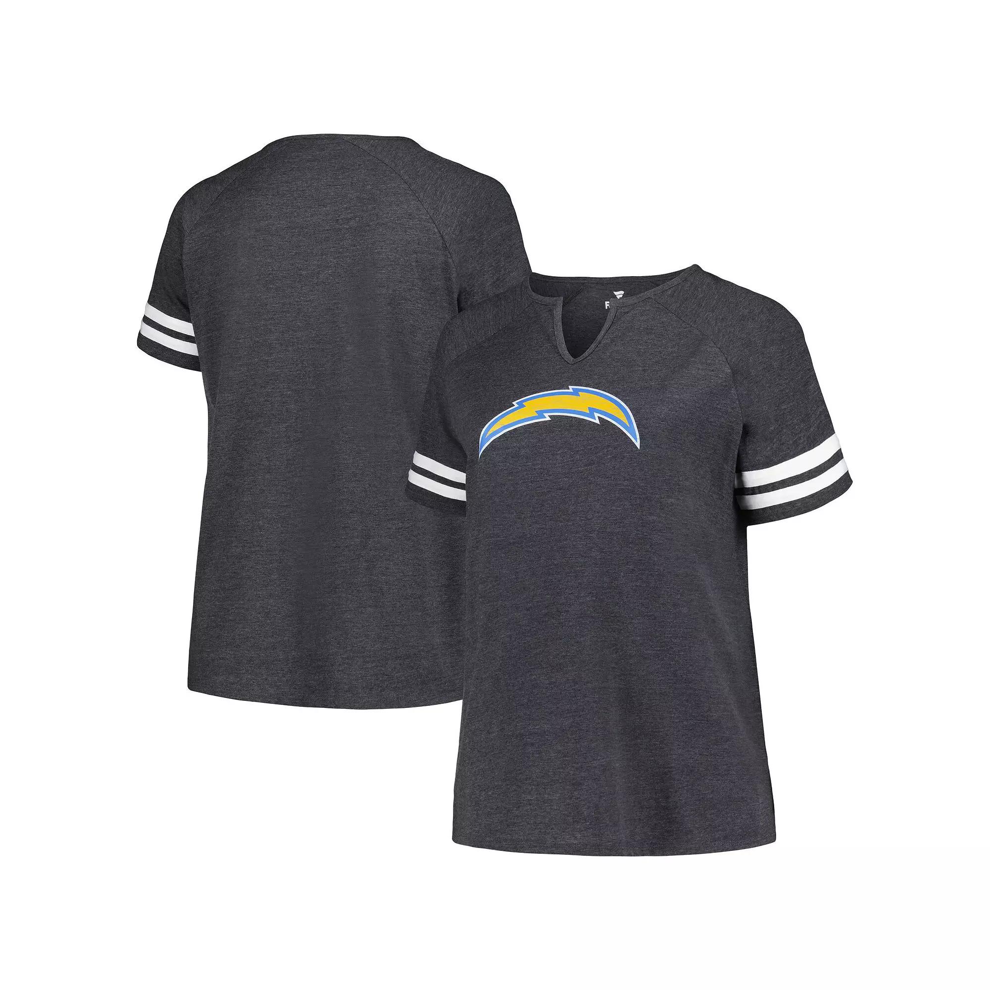 This Los Angeles Chargers Logo T-shirt by Fanatics Branded is a great addition to your game day wardrobe. It features a notch neck, distressed Los Angeles Chargers graphics and bold stripes, perfect for standing out wherever you go. The vintage design is a great way to highlight your unwavering loyalty to the team.This Los Angeles Chargers Logo T-shirt by Fanatics Branded is a great addition to your game day wardrobe. It features a notch neck, distressed Los Angeles Chargers graphics and bold stripes, perfect for standing out wherever you go. The vintage design is a great way to highlight your unwavering loyalty to the team.PRODUCT FEATURESMaterial: 60% Cotton/40% PolyesterShort sleeveMachine wash, tumble dry lowDistressed screen print graphicsOfficially licensedBrand: Fanatics BrandedImportedSewn-on stripesNotch neckRaglan sleeves Size: 3X. Color: Charcoal. Gender: female. Age Group: adult.