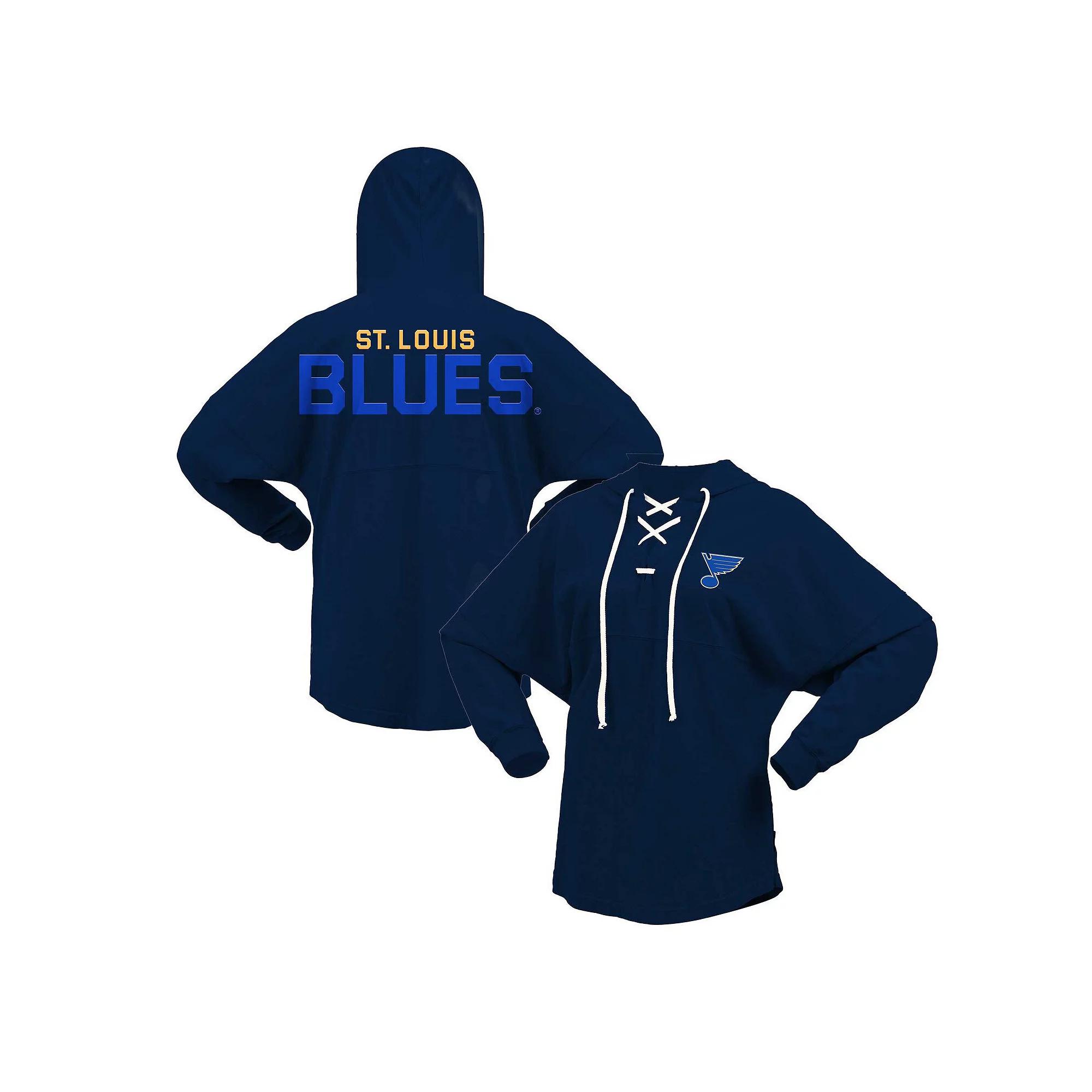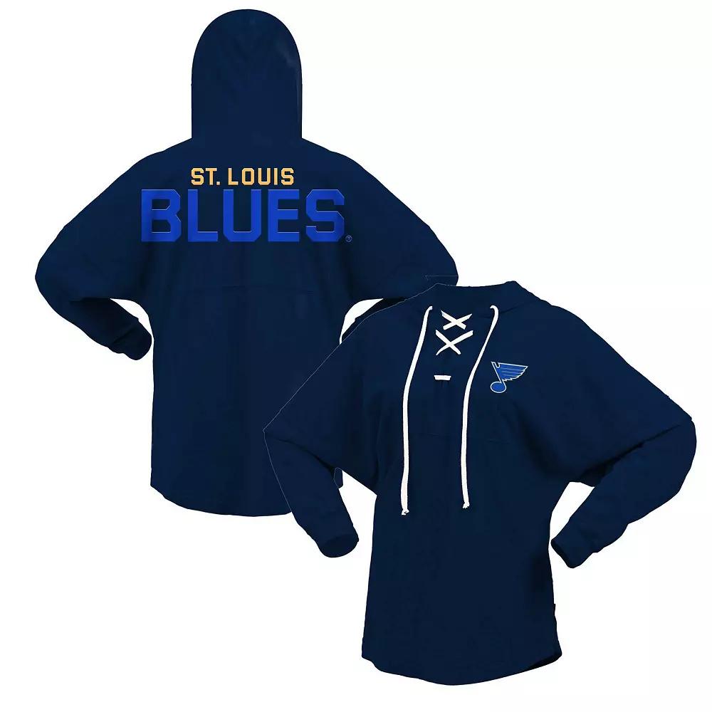 Make a fashion statement on St. Louis Blues game day in this Fanatics Branded Jersey V-neck T-shirt. It features a sporty lace-up neckline and vivid team graphics to highlight your unwavering St. Louis Blues spirit. The longer, rounded hem also provides a more comfortable fit and feel while the hood provides additional coverage.