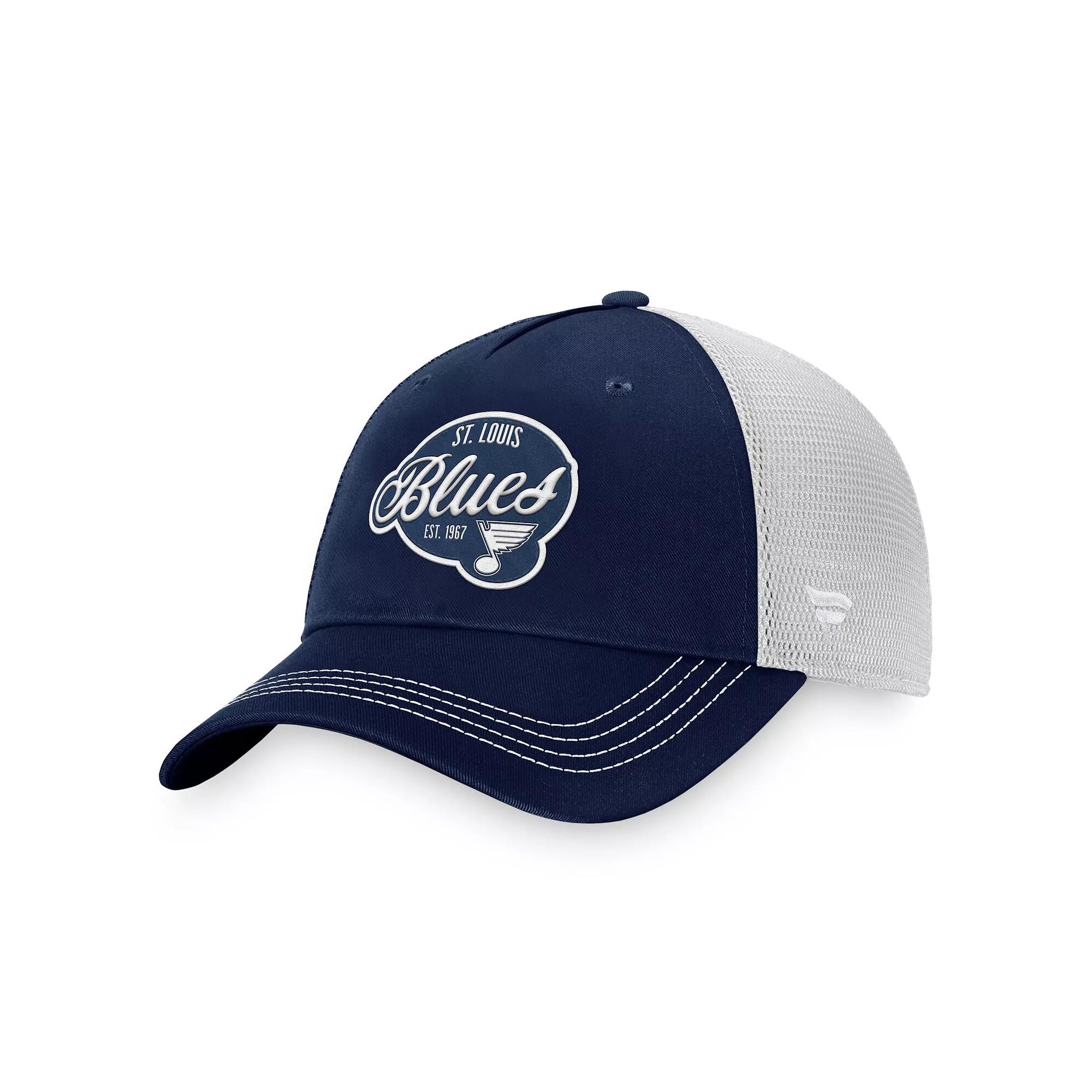 Youve been on the hunt for an excellent addition to your game day ensemble. This St. Louis Blues Fundamental cap from Fanatics Branded is just the hat for you. It features incredible St. Louis Blues graphics on the crown in a cool tonal design. The trucker design and snap closure will give you a super comfortable fit all game long.