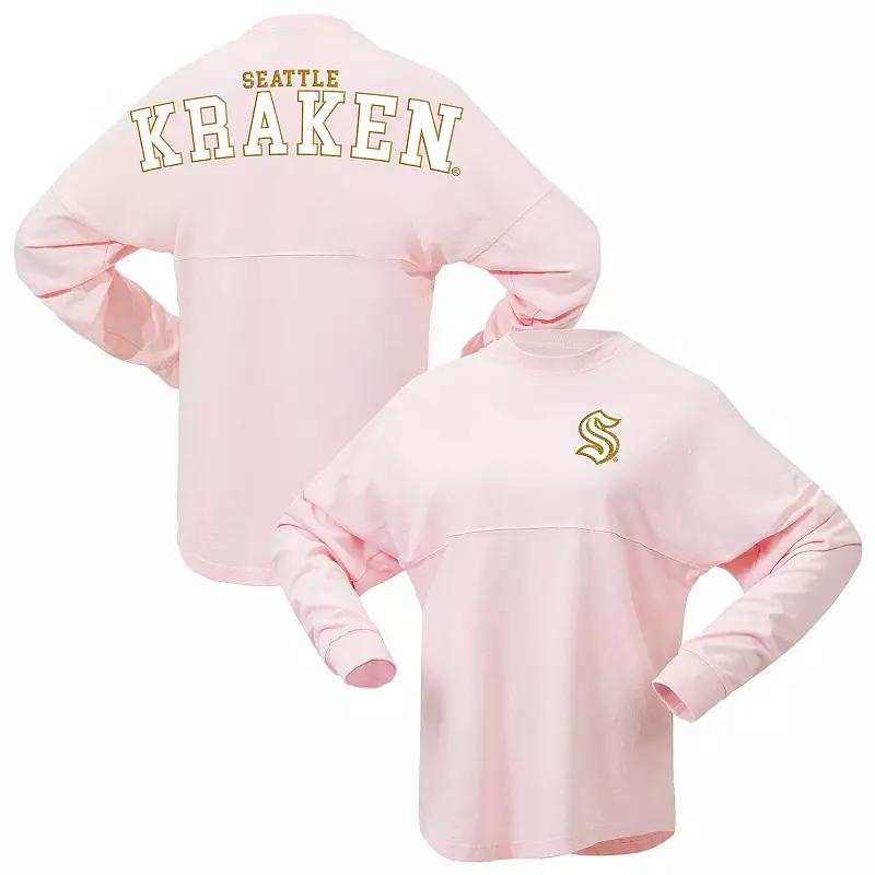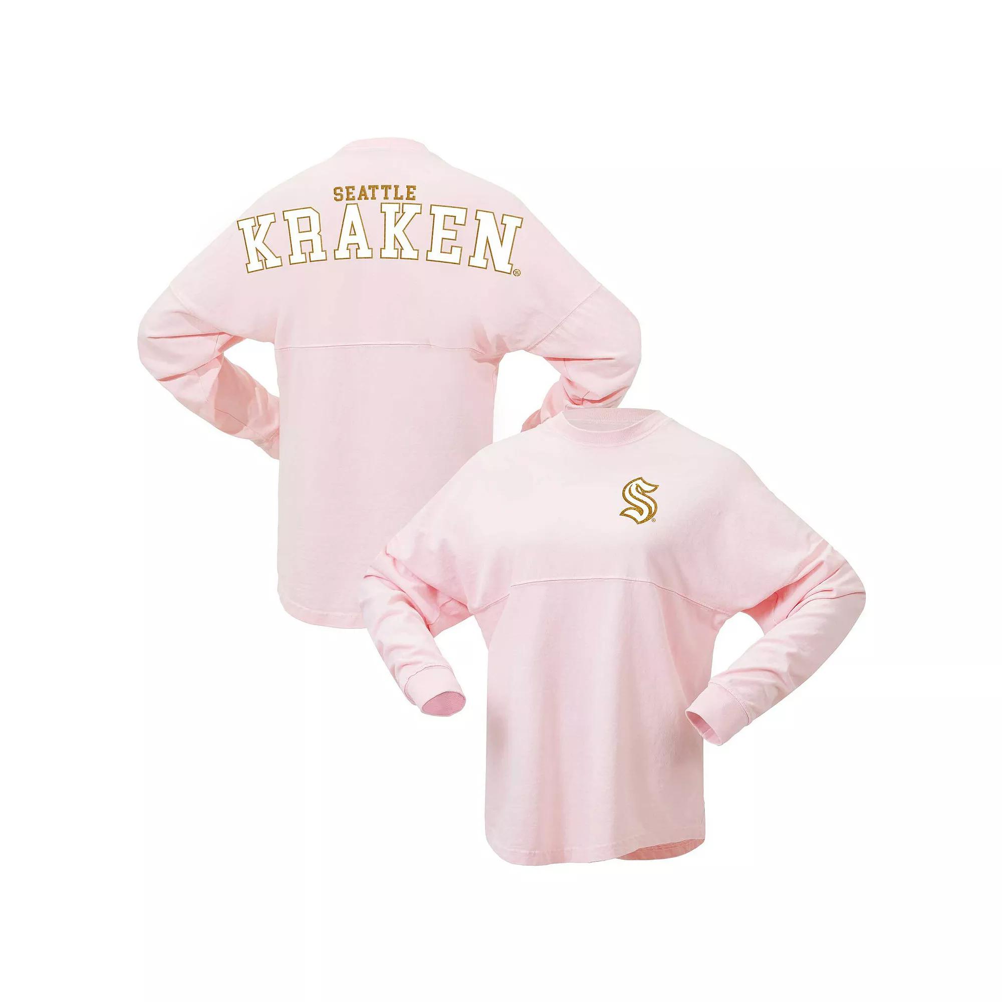 Sport a spirited piece on game day with this Spirit Jersey T-shirt by Fanatics Branded. It features bold Seattle Kraken graphics with dazzling glitter details for a charming display of team spirit. The relaxed design of this tee paired with quality jersey fabric offers comfort with each wear.Sport a spirited piece on game day with this Spirit Jersey T-shirt by Fanatics Branded. It features bold Seattle Kraken graphics with dazzling glitter details for a charming display of team spirit. The relaxed design of this tee paired with quality jersey fabric offers comfort with each wear.PRODUCT FEATURESBrand: Fanatics BrandedScreen print graphics with glitter detailsLong sleeveOfficially licensedRounded hemsImportedMaterial: 100% CottonMachine wash, tumble dry low Color: Pink. Gender: female. Age Group: adult.