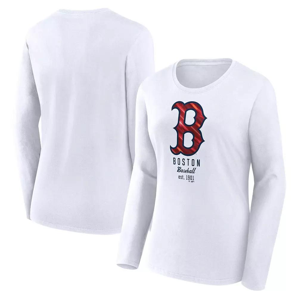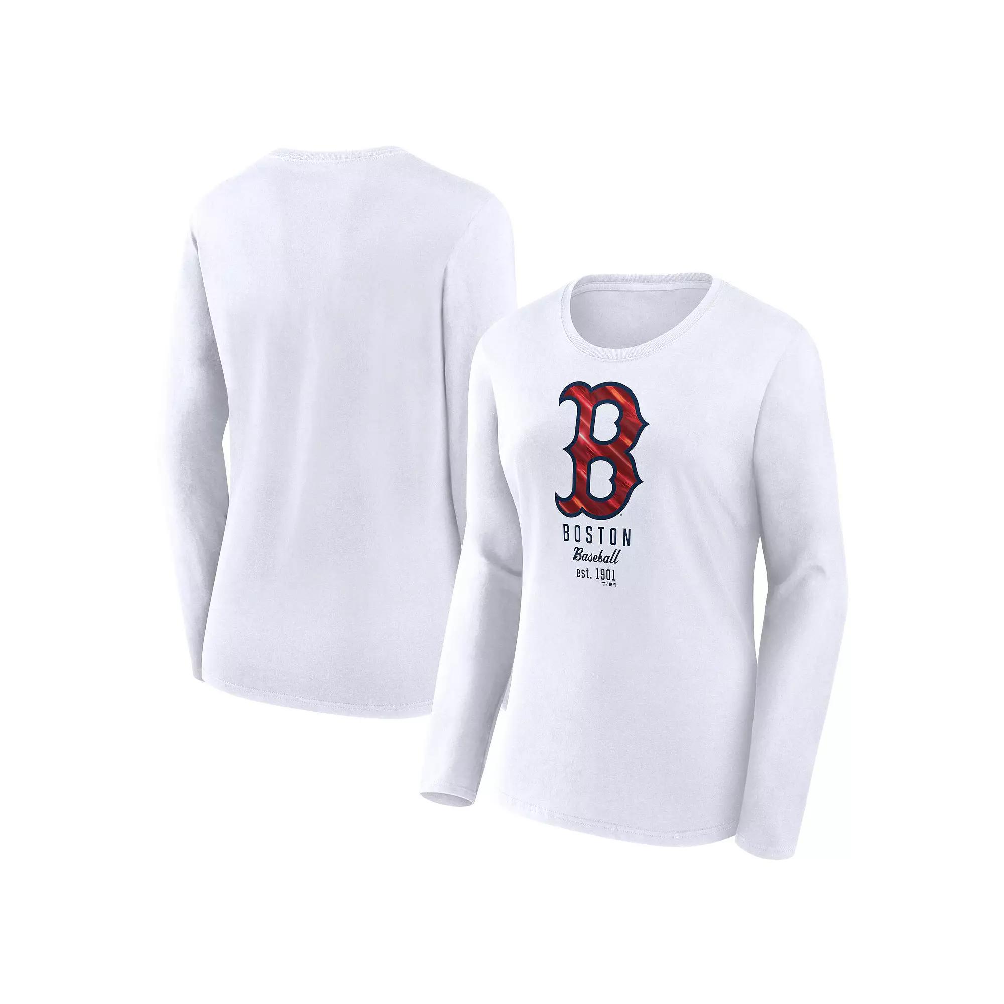 When cooler weather strikes during baseball season, step up your style in this Boston Red Sox T-shirt from Fanatics Branded. It features the team logo in a shiny design that draws attention to your Boston Red Sox spirit. Cotton fabric helps you stay comfortable all day long.