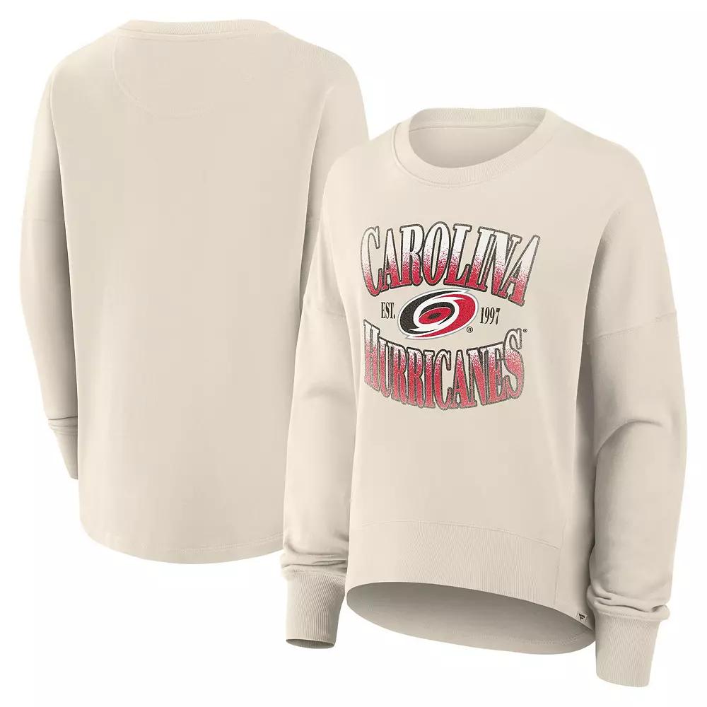 Stay comfy in fashionable Carolina Hurricanes outerwear with this Oversized Slice Pullover Sweatshirt by Fanatics. Its oversized fit and dropped shoulders provide a roomy, relaxed feel and trendy look. The breathable warmth of French terry fabric makes this Carolina Hurricanes sweatshirt a cool-weather favorite. Brand: Fanatics. Machine wash, tumble dry low. Officially licensed. Imported. Long sleeve. Material: 100% Cotton. Rubberized team name. Oversized Fit: Intentionally designed with wider and longer proportions for a spacious feel and a laidback look. For a less relaxed fit, consider sizing down. French terry fabric has a heavyweight feel (300gsm). Hip length (Measures approx. 24). Embroidered team logo. Dropped shoulder seams provide ease of movement. Pullover. Model is 5'10 and wearing size M. Rounded droptail back hem (Measures approx. 27''). Size: XL. Color: Beige. Gender: female. Age Group: adult.