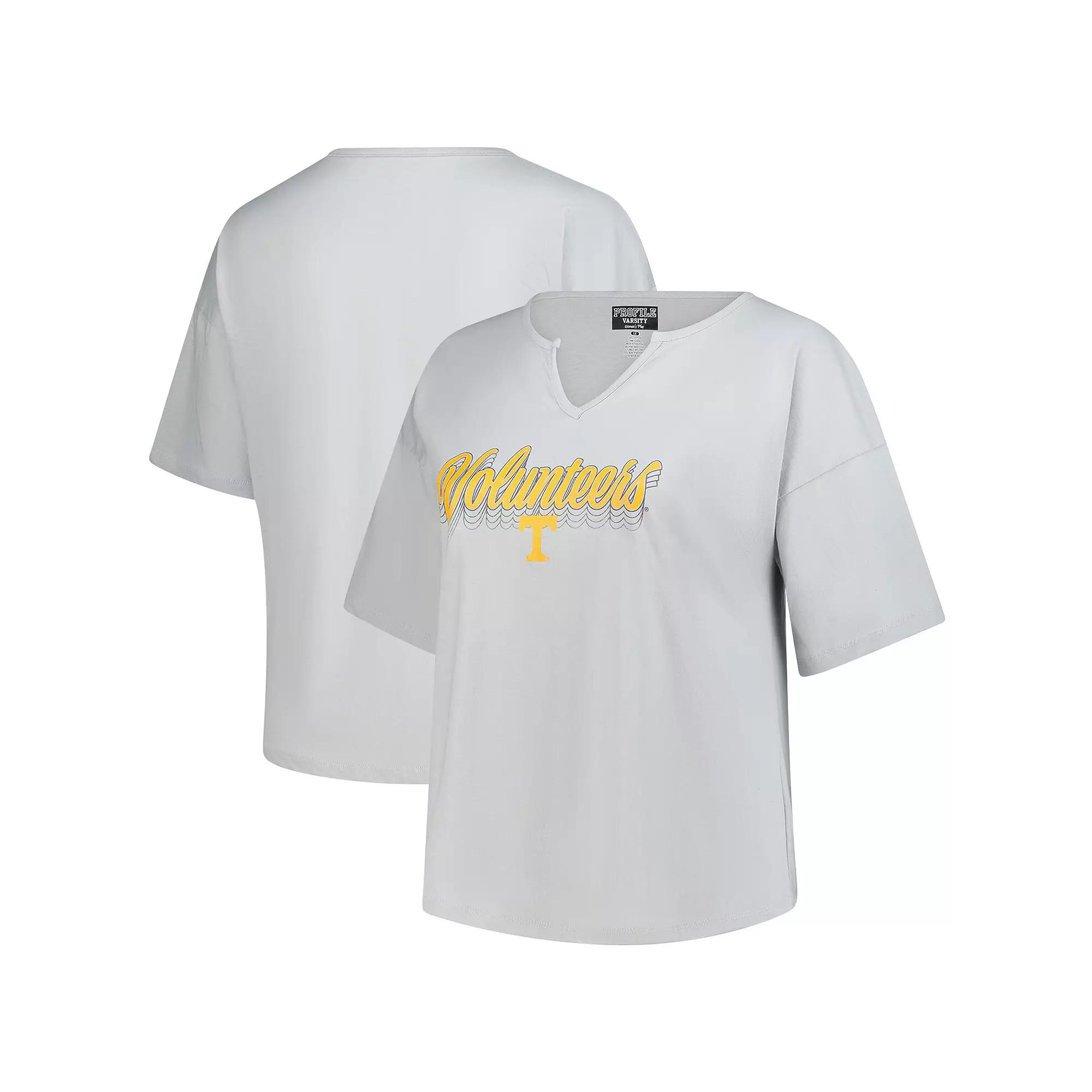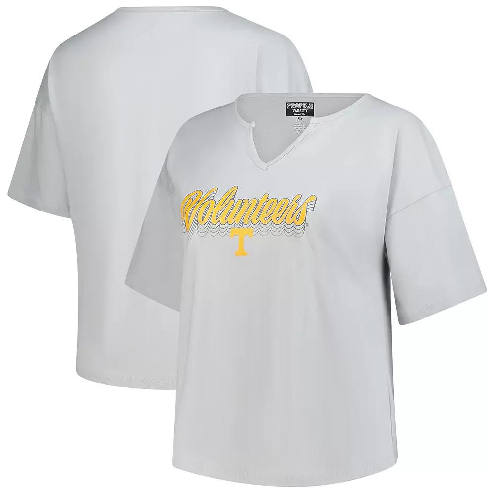 Show your team pride in this Tennessee Volunteers Plus Size Winning Gear Notch Neck T-Shirt from Fanatics. The rounded droptail hem provides added coverage, making it ideal for pairing with your favorite leggings or jeans. The screen print graphics stacked on the front proudly display your Tennessee Volunteers pride, making it the perfect addition to your game day ensemble. Screen print graphics stacked on the front. Brand: Fanatics. Machine wash, tumble dry low. Dropped shoulder seams provide a relaxed fit for ease of movement. Rounded droptail hem for added coverage. Officially licensed. Short sleeve. Material: 100% Cotton. Imported. Size: 4X. Color: Grey. Gender: female. Age Group: adult.