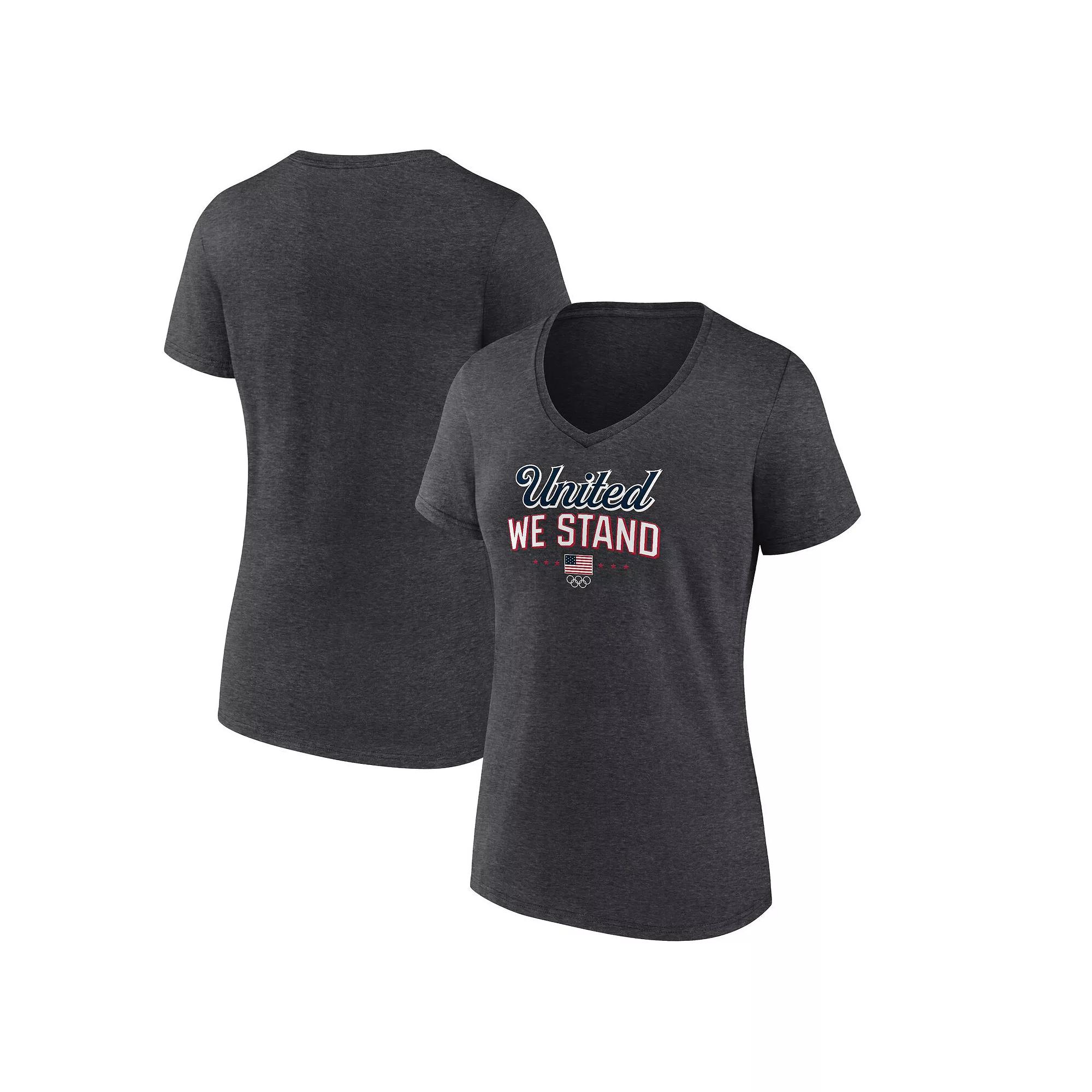 Celebrate your unwavering support for Team USA with the Womens Fanatics Heather Charcoal Team USA Victory V-Neck T-Shirt. Its soft cotton fabric and comfortable V-neck design make it perfect for cheering on Team USA in style. The screen print graphics proudly display your allegiance, showcasing your dedication to the team and the Olympic spirit.Celebrate your unwavering support for Team USA with the Womens Fanatics Heather Charcoal Team USA Victory V-Neck T-Shirt. Its soft cotton fabric and comfortable V-neck design make it perfect for cheering on Team USA in style. The screen print graphics proudly display your allegiance, showcasing your dedication to the team and the Olympic spirit.PRODUCT FEATURESImportedOfficially licensedMachine wash, tumble dry lowV-neckScreen print graphicsBrand: FanaticsMaterial: 100% CottonShort sleeve Size: XL. Color: Usa Charco. Gender: female. Age Group: adult.