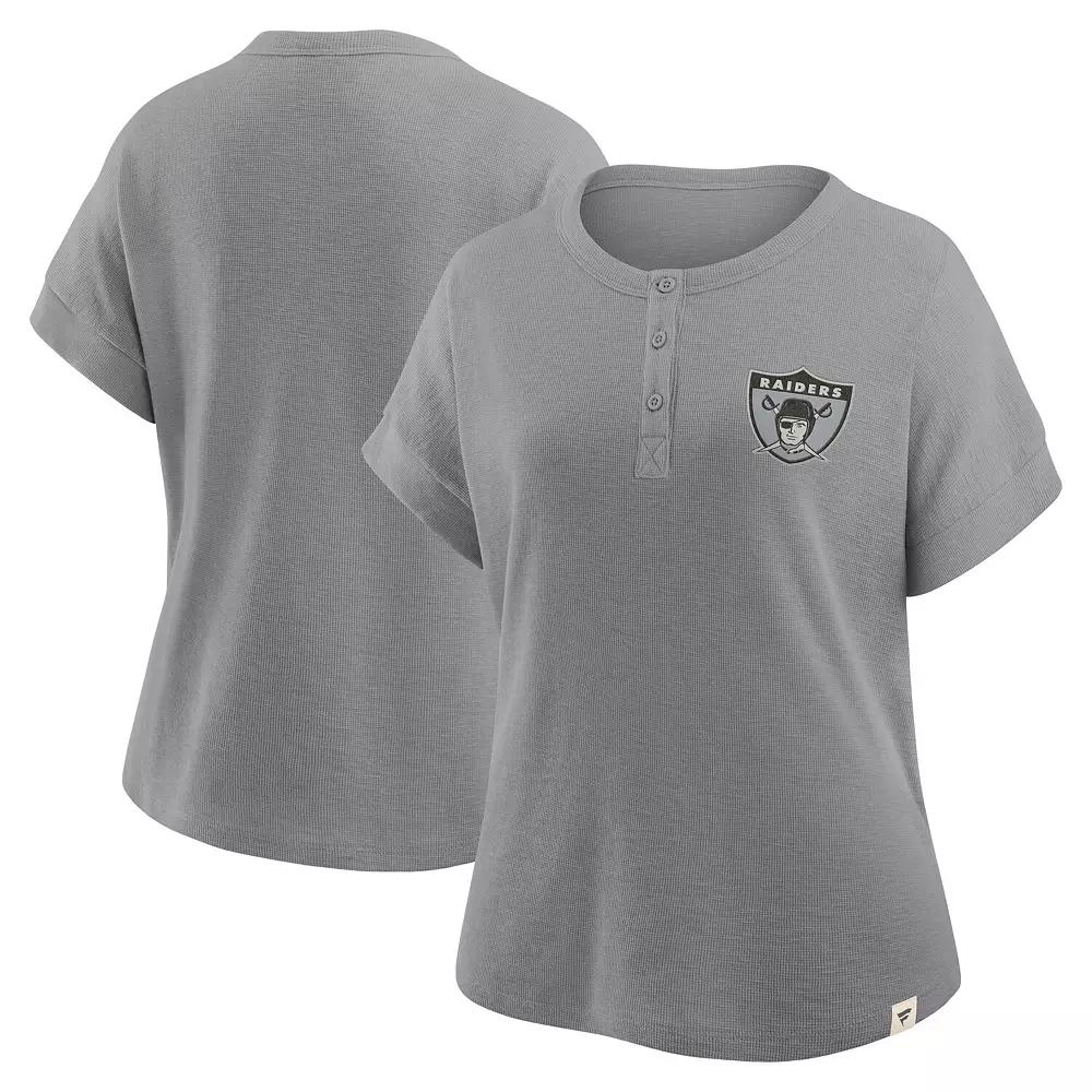 Elevate your casual Las Vegas Raiders style with this Oversized Hometown Premium Henley Shirt by Fanatics. Its soft French slub fabric and oversized fit provide ultimate comfort. The throwback team logo adds a vintage touch to this trendy Las Vegas Raiders shirt. Oversized Fit: Intentionally designed with wider and longer proportions for a spacious feel and a laidback look. For a less relaxed fit, consider sizing down. Vintage team logo embroidered at left chest. Imported. Three-button Henley placket. Material: 84% Cotton/16% Polyester. Officially licensed. Brand: Fanatics. Machine wash, tumble dry low. French slub fabric has a midweight feel (180gsm). Hip length (Measures approx. 24). Short sleeve. Size: XS. Color: Lvr Grey. Gender: female. Age Group: adult.