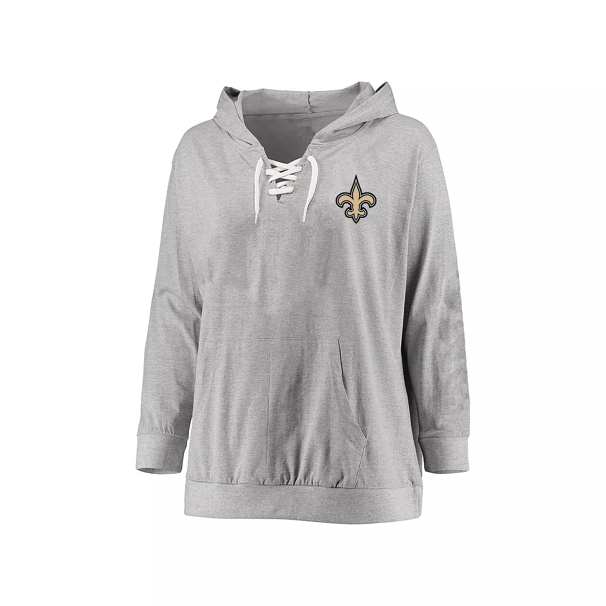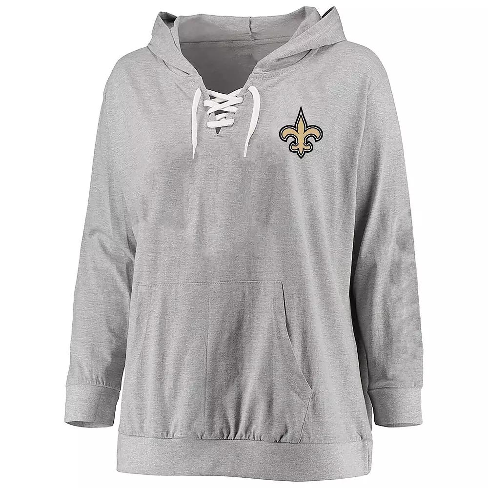 Stay cozy while cheering on the New Orleans Saints with this Fanatics Pullover Hoodie. The midweight design makes it ideal for moderate temperatures, perfect for cheering on the New Orleans Saints during those crisp game days. The lace-up neckline adds a touch of stylish versatility, allowing you to customize your look and showcase your fandom in a way that's uniquely you.Stay cozy while cheering on the New Orleans Saints with this Fanatics Pullover Hoodie. The midweight design makes it ideal for moderate temperatures, perfect for cheering on the New Orleans Saints during those crisp game days. The lace-up neckline adds a touch of stylish versatility, allowing you to customize your look and showcase your fandom in a way that's uniquely you.PRODUCT FEATURESOfficially licensedMidweight hoodie suitable for moderate temperaturesPulloverImportedMachine wash, tumble dry lowRib-knit cuffs and waist hemLace-up neckMaterial: 60% Cotton/40% PolyesterHoodedLong sleeveFront pouch pocketTeam graphic printed on left chestBrand: Fanatics Size: 1X. Color: Grey. Gender: female. Age Group: adult.