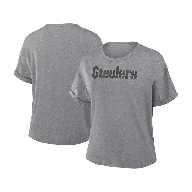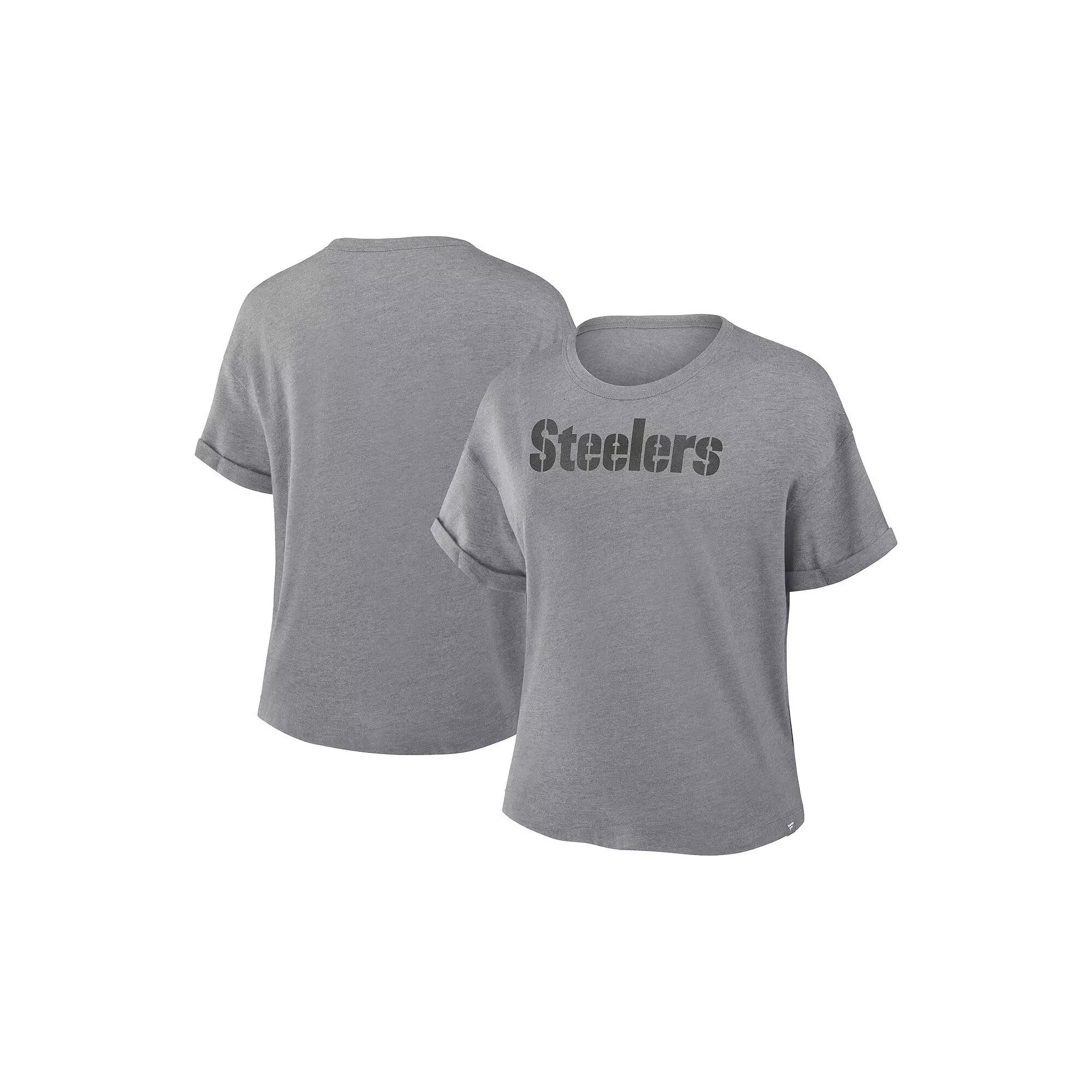 Show up to the stadium in style with this Pittsburgh Steelers Swing Pass Tribute Tri-Blend T-Shirt. Made from a cozy blend of poly, cotton, and rayon, this fabric is treated with a softener for that luxurious, vintage vibe and beautiful drape. It also features double-needle stitching for added durability.Show up to the stadium in style with this Pittsburgh Steelers Swing Pass Tribute Tri-Blend T-Shirt. Made from a cozy blend of poly, cotton, and rayon, this fabric is treated with a softener for that luxurious, vintage vibe and beautiful drape. It also features double-needle stitching for added durability.PRODUCT FEATURESImportedMaterial: 100% CottonBrand: FanaticsDouble self fabric applique with zig zag stitchOfficially licensedShort sleeveSew down and direct embroidery Color: Grey. Gender: female. Age Group: adult.