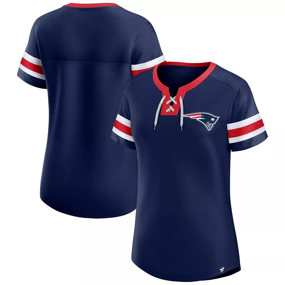 Add a touch of sparkle to your New England Patriots game day look with this Fanatics Lace-Up Bling T-Shirt. This stylish tee features eye-catching lace-up detailing at the neckline and a touch of shimmer with bling accents. The soft, lightweight fabric and relaxed fit make it a comfortable choice for everyday wear or game day.Add a touch of sparkle to your New England Patriots game day look with this Fanatics Lace-Up Bling T-Shirt. This stylish tee features eye-catching lace-up detailing at the neckline and a touch of shimmer with bling accents. The soft, lightweight fabric and relaxed fit make it a comfortable choice for everyday wear or game day.PRODUCT FEATURESLace-upBrand: FanaticsStripe inserts at sleevesMachine wash, tumble dry lowImportedMaterial: 100% PolyesterOfficially licensedRounded hemShort sleeve Color: Navy. Gender: female. Age Group: adult.