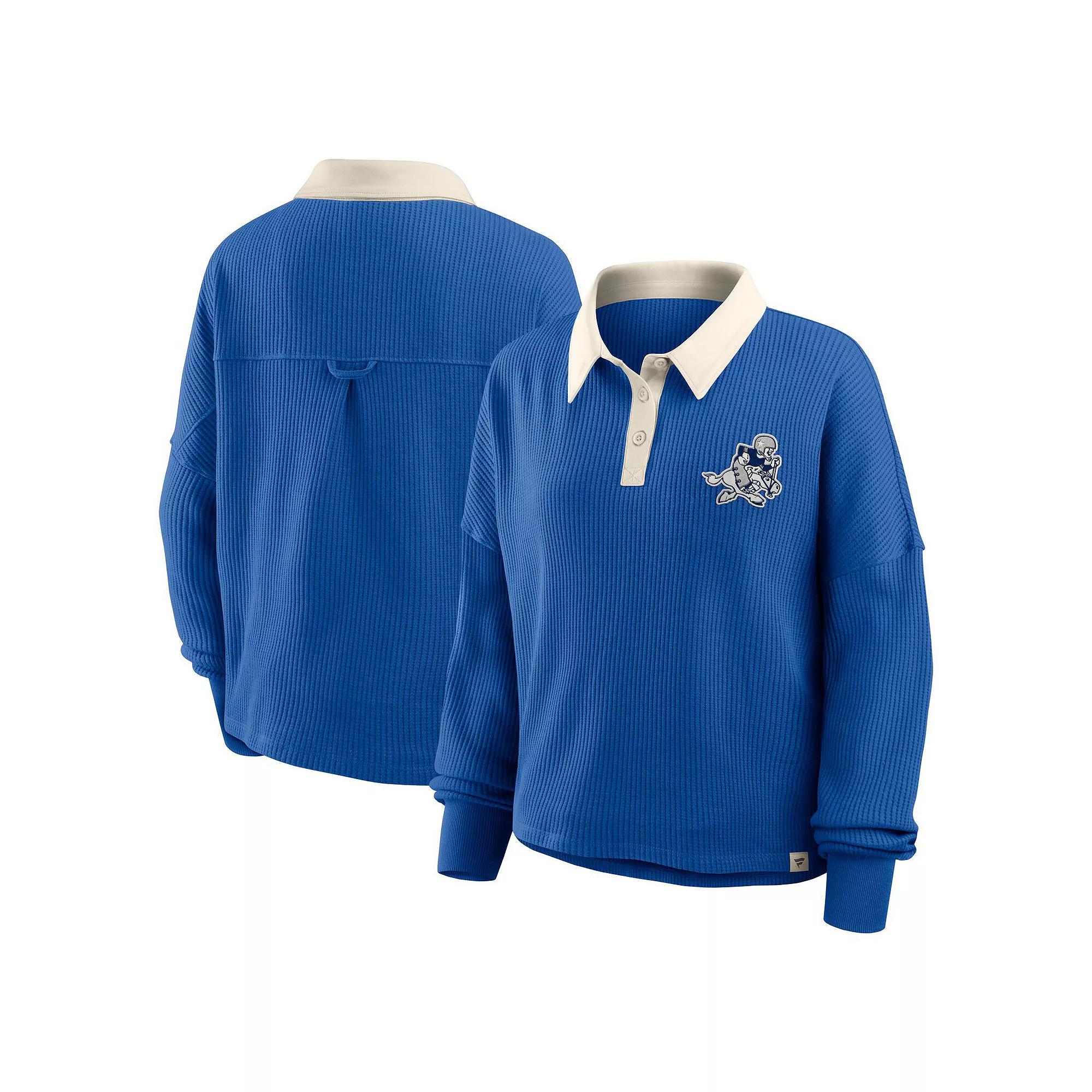 Stay comfy in vintage Dallas Cowboys fashion with this Oversized Hometown Premium Thermal Long Sleeve Shirt by Fanatics. Chunky thermal fabric provides cozy warmth, while trendy dropped shoulders and an oversized fit create a relaxed, roomy feel. The throwback team logo adds a vintage touch to this collared Dallas Cowboys shirt. Dropped shoulder seams provide ease of movement. Officially licensed. Oversized Fit: Intentionally designed with wider and longer proportions for a spacious feel and a laidback look. For a less relaxed fit, consider sizing down. Long sleeve. Chunky thermal fabric has a midweight feel (240gsm). Locker loop on back yoke seam. Machine wash, tumble dry low. Material: 60% Cotton/40% Polyester. Hip length (Measures approx. 24). Brand: Fanatics. Imported. Vintage team logo embroidered at left chest. Three-button placket with fold-down collar. Size: XS. Color: Blue. Gender: female. Age Group: adult.