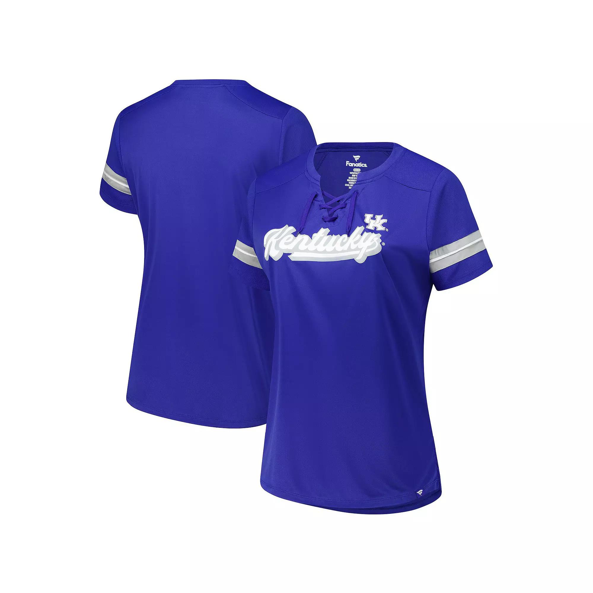 Get ready for game day with this Kentucky Wildcats Overtime Readiness Lace-Up T-Shirt from Fanatics. This lightweight and breathable tee features sewn-on sleeve stripes with contrast-color piping for a sporty look thats sure to turn heads. The lace-up V-neck adds a touch of stylish versatility, making it perfect for game day or any casual occasion.Get ready for game day with this Kentucky Wildcats Overtime Readiness Lace-Up T-Shirt from Fanatics. This lightweight and breathable tee features sewn-on sleeve stripes with contrast-color piping for a sporty look thats sure to turn heads. The lace-up V-neck adds a touch of stylish versatility, making it perfect for game day or any casual occasion.PRODUCT FEATURESShort sleeveMachine wash, tumble dry lowOfficially licensedSewn-on sleeve stripes with contrast-color pipingLace-up V-neckImportedLightweight, breathable fabricRounded hem with side splitsBrand: FanaticsMaterial: 100% PolyesterHeat-sealed team logo on left chest with script wordmark at top center Size: 3X. Color: Blue. Gender: female. Age Group: adult. Material: Cotton.