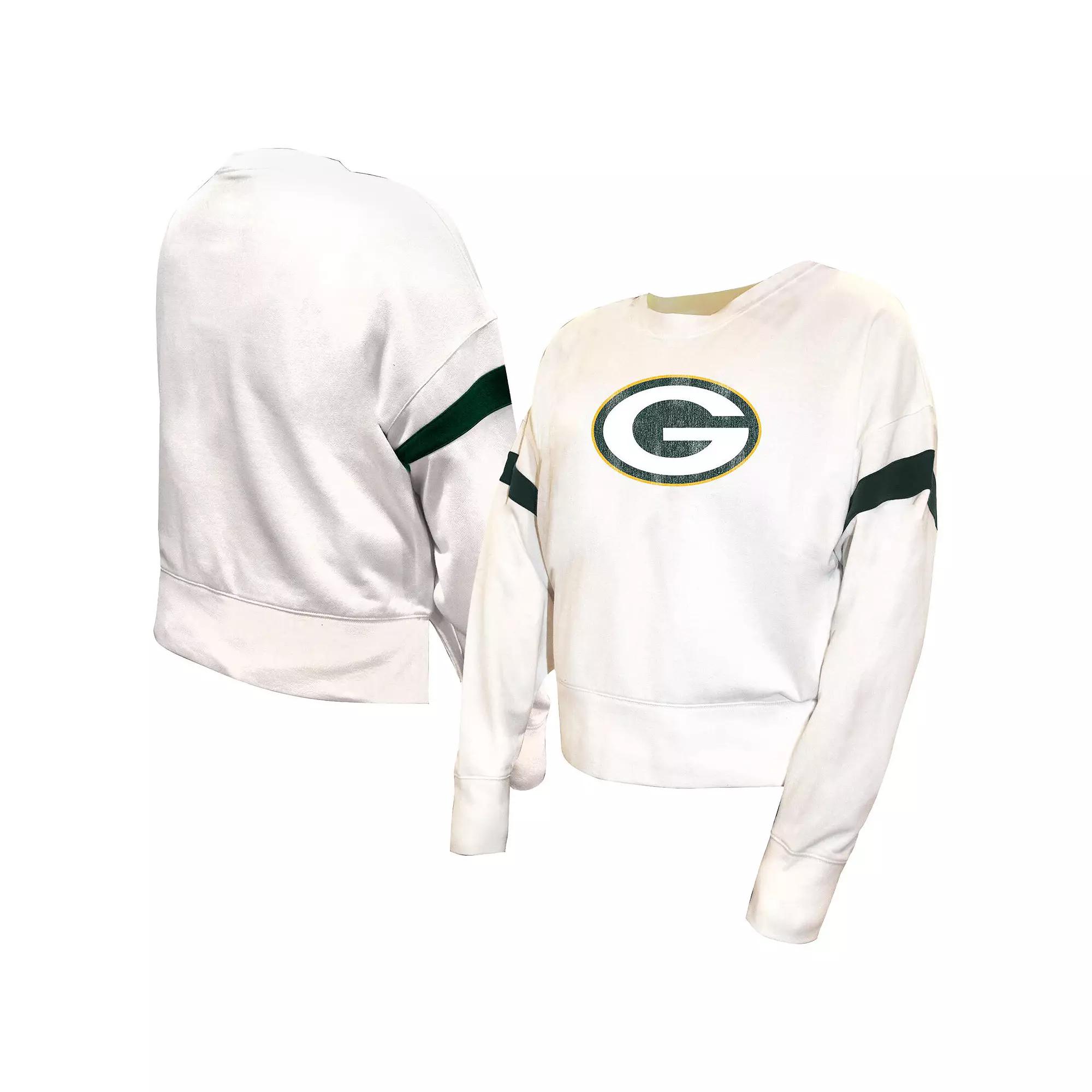 Stay cozy and show off your Green Bay Packers pride with this Fleece Pullover Sweatshirt from Fanatics. This incredibly soft fleece sweatshirt boasts a relaxed, loose fit and a slightly cropped hem that sits right at the hip for a flattering look. The contrast-color striped insets at the shoulders and distressed screen print team logo at the front add a touch of sporty style.Stay cozy and show off your Green Bay Packers pride with this Fleece Pullover Sweatshirt from Fanatics. This incredibly soft fleece sweatshirt boasts a relaxed, loose fit and a slightly cropped hem that sits right at the hip for a flattering look. The contrast-color striped insets at the shoulders and distressed screen print team logo at the front add a touch of sporty style.PRODUCT FEATURESLong sleeveThick waistband with side splitsRelaxed, loose fit, for a more snug fit consider sizing downOfficially licensedMaterial: 60% Cotton/40% PolyesterMachine wash, tumble dry lowDropped shouldersBrand: FanaticsDistressed screen print team logo at frontPulloverImportedContrast-color striped insets at shouldersSlightly cropped hem that sits right at the hipMidweight sweatshirt suited for moderate temperatures Size: 1X. Color: White. Gender: female. Age Group: adult.