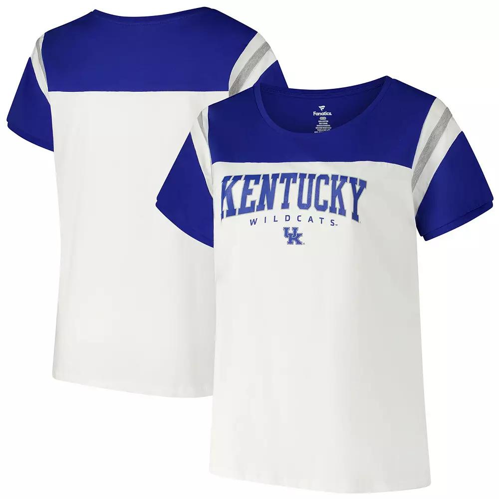 Embrace the thrill of victory with this Kentucky Wildcats Winning Gear T-Shirt from Fanatics. Made from 100% cotton, this tee provides ultimate comfort for all-day wear. The rib-knit collar and cuffs supply a touch of classic style while the yoke and bottom sleeve add a pop of contrasting color.Embrace the thrill of victory with this Kentucky Wildcats Winning Gear T-Shirt from Fanatics. Made from 100% cotton, this tee provides ultimate comfort for all-day wear. The rib-knit collar and cuffs supply a touch of classic style while the yoke and bottom sleeve add a pop of contrasting color.PRODUCT FEATURESYoke and bottom sleeve of contrasting colorMachine wash, tumble dry lowOfficially licensedImportedShort sleeveCrew neckMaterial: 100% CottonRib knit collar and cuffsTop sleeves with inset and sewn-on stripesBrand: FanaticsStacked screen print graphics on front Size: XL. Color: White. Gender: female. Age Group: adult.