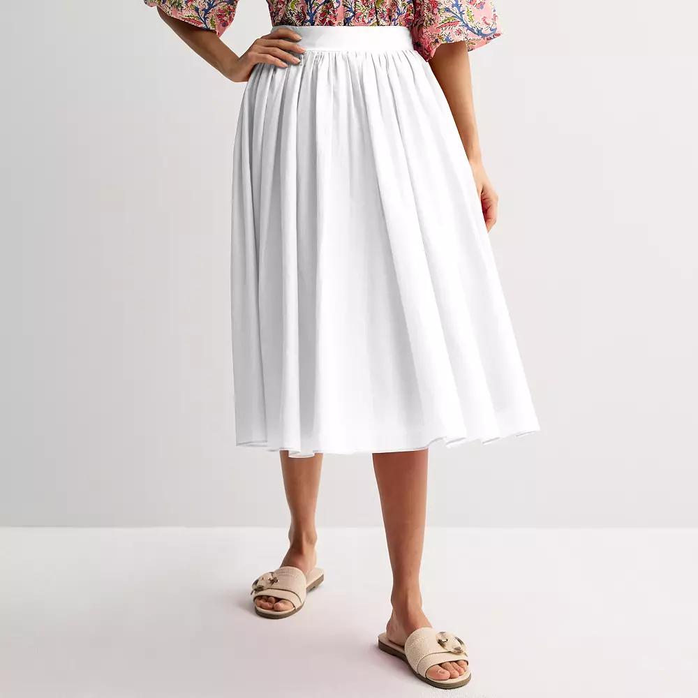 Youll love the charming style of this womens Farmers Market Flowy Midi Skirt.Click on this WOMENS GUIDE to find the perfect fit and more!Youll love the charming style of this womens Farmers Market Flowy Midi Skirt.Click on this WOMENS GUIDE to find the perfect fit and more!FEATURES A-line silhouette No closure - pull-on styling Straight hem Fully linedFIT & SIZING Back-elastic waistband Midi length hits below the knee Relaxed fit through the hip and thigh 31-in. lengthFABRIC & CARE Cotton Machine wash and tumble dry Imported Size: Medium. Color: White. Gender: female. Age Group: adult.