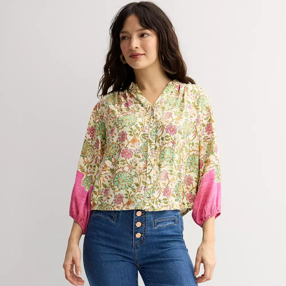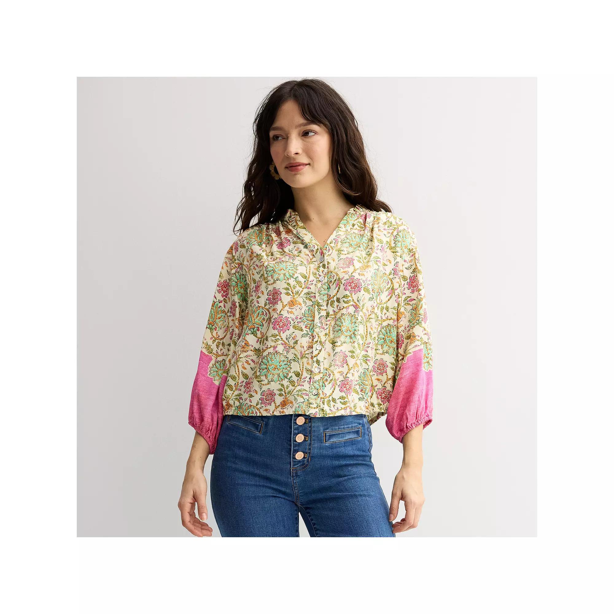 You'll love the flowy, elegant style of this women's Farmers Market Puff Sleeve Top.Click on this WOMEN'S GUIDE to find the perfect fit and more!You'll love the flowy, elegant style of this women's Farmers Market Puff Sleeve Top.Click on this WOMEN'S GUIDE to find the perfect fit and more!FEATURES V-neck Puffed 3/4-length sleeves Elastic cuffs Ruched hem No closure - pullover stylingFIT & SIZING 23-in. lengthFABRIC & CARE Rayon Machine wash delicate and tumble dry low Imported Size: Medium. Color: Tea Garden Pink. Gender: female. Age Group: adult.