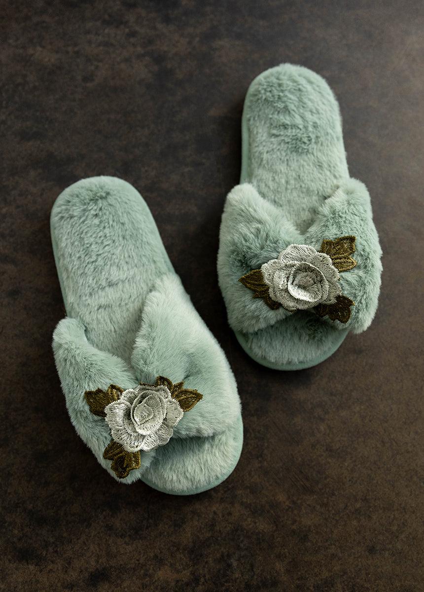 Keep your feet warm and stylish with these beautiful slippers featuring a delicate embroidered flower design. Crafted from ultra-soft fabric, they provide a plush and cozy feel for ultimate relaxation. The cushioned sole ensures excellent support, making them perfect for all-day wear around the house. With their easy slip-on design, these slippers are both practical and effortlessly chic. Elevate your loungewear collection with these must-have comfy slippers! Embroidered flower 100% Polyester TPR Sole Wipe to clean