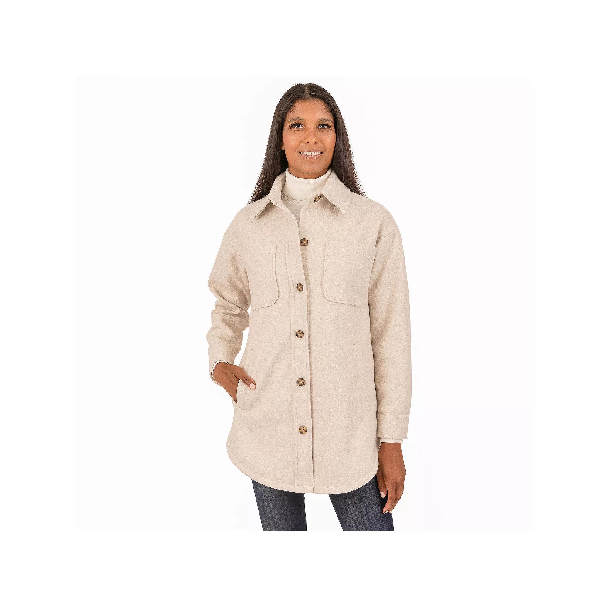 Give your style a fresh tune with this Womens Fleet Street Button Down Midweight Fleece Shirt Jacket.Click on this WOMENS GUIDE to find the perfect fit and more! Give your style a fresh tune with this Womens Fleet Street Button Down Midweight Fleece Shirt Jacket.Click on this WOMENS GUIDE to find the perfect fit and more! FEATURES Collared neckline Button front closure Long sleeves Button cuffs 4 front pockets Shirttail hem Heathered woven fleece feel Fully linedFIT & SIZING 35-in. length from shoulder to hem Designed to hit above the knees Midweight warmth ratingFABRIC & CARE Polyester Machine wash delicate and tumble dry low Imported Size: Large. Color: Grey. Gender: female. Age Group: adult.