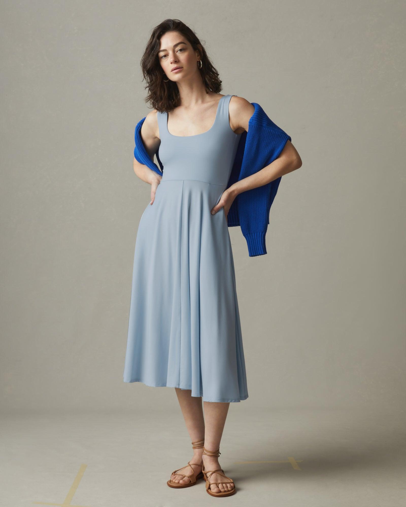 Our take on the timeless fit and flare dress that’s been a classic dress for close to a century. Square neckline with generous coverage. Custom stretch knit through the bodice comfortably holds you in and flares out at the bottom to give you the perfect shape and drape. A day-to-night dress that truly lives up to its name.