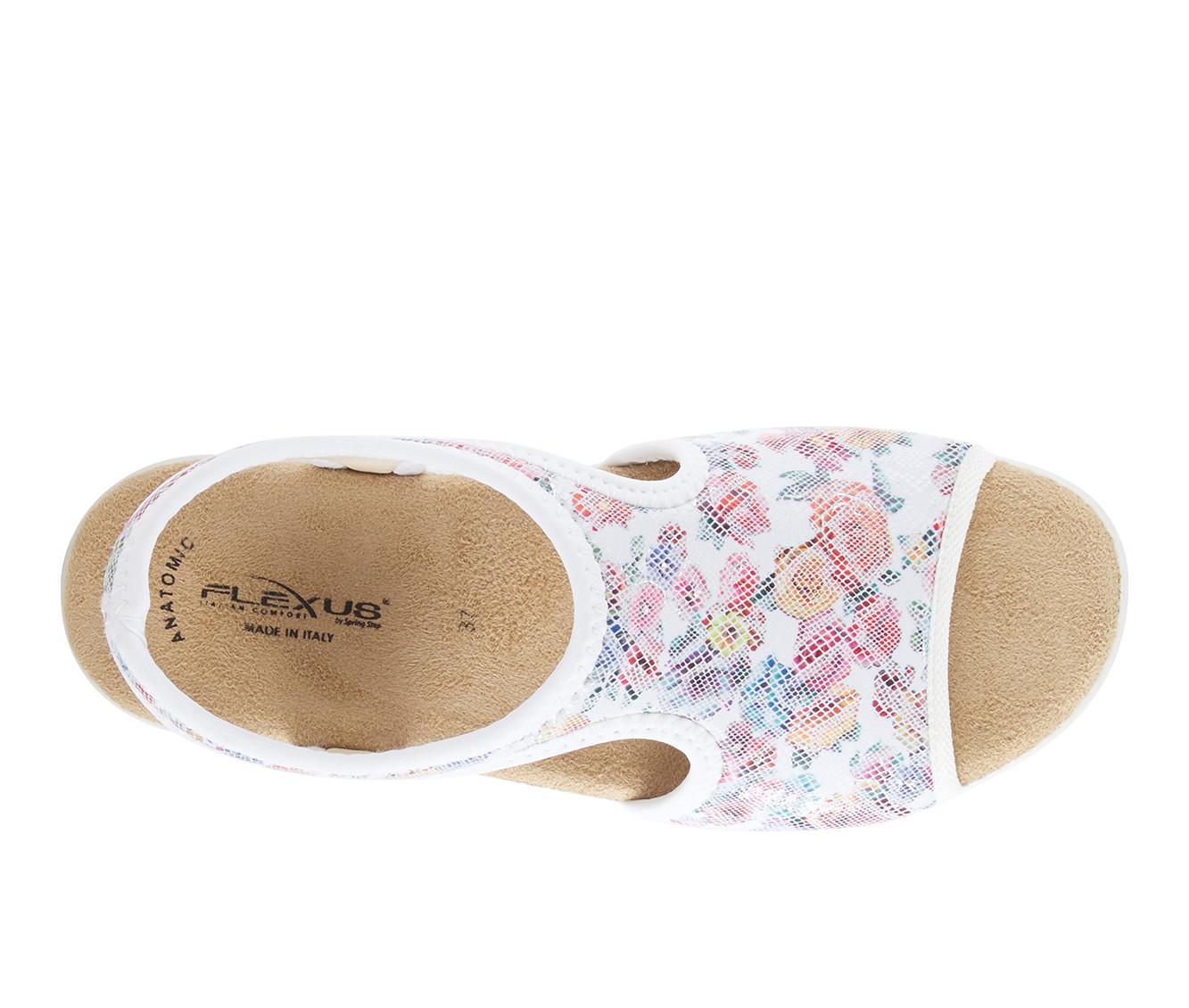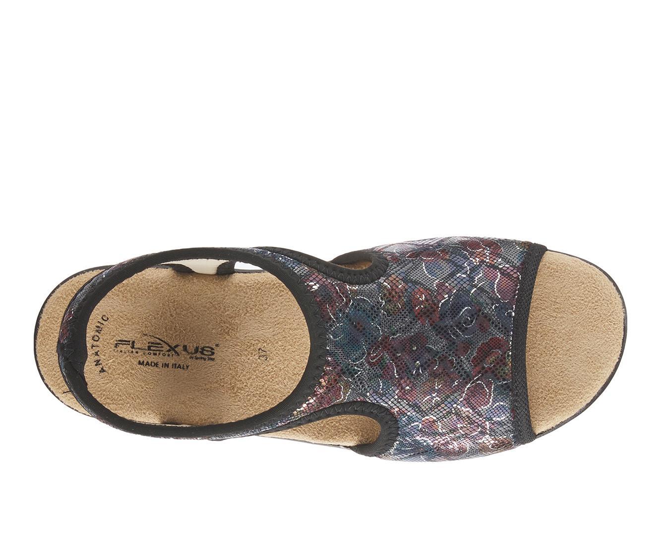 Flexus Style: NYAMAN-FLORAL An Italian sling back sandal featuring lycra stretch upper and back strap with a floral print design, all on a comfort padded anatomical footbed and flexible, anti-shock wedge sole for superior comfort. Upper: Lycra Lining: Synthetic Insole: Microsuede Outsole: Polyurethane Closure: Slip-on Heel Height: 1 1/2"" Platform Height: 1/2"" Features: - Anatomic Insole, Arch Support, Comfort, Flexible Sole, Padded Insole, Premium, Shock absorbent Outsole, Stretchable - Arthritis shoes, Bunions, Diabetes, Edema/Swelling in the feet, Heel Spurs, Plantar Fasciitis.